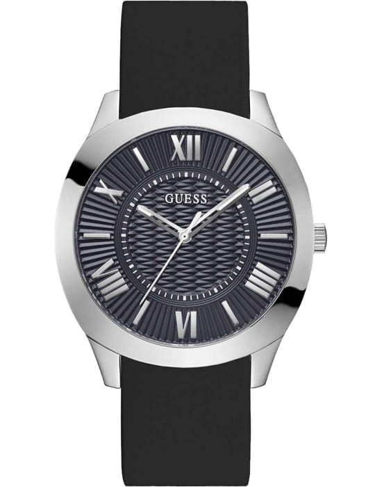 Мужские наручные часы Guess GW0728G1 минеральным стекломМинеральное стеклоМинеральное стекло представляет собой искусственно выращенный минерал кварца. Такое стекло отличается особой устойчивостью к повреждениям и царапинам. Уступает по некоторым качествам сапфировому стеклу., кварцевый механизм с высокой точностью. Класс водозащиты: 50 метров, позволит защитить корпус от случайных брызг или капель дождя. Корпус часов изготовлен из стали. Силиконовый ремешок. Стрелки с люминесцентным покрытиемЛюминесцентное покрытиеПозволяет считывать показания времени в темноте. Производители наносят на стрелки, часовые индексы, безель или поверхность циферблата светонакопительный состав, дающий холодное свечение..