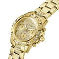 Женские наручные часы Guess Dress GW0771L2 с минеральным стекломМинеральное стеклоМинеральное стекло представляет собой искусственно выращенный минерал кварца. Такое стекло отличается особой устойчивостью к повреждениям и царапинам. Уступает по некоторым качествам сапфировому стеклу., кварцевый механизм с высокой точностью. Корпус часов изготовлен из стали с IP-покрытиемIP-покрытиеМетод ионного напыления. Демонстрирует повышенную устойчивость к истиранию, окислению и химическим веществам. Под воздействием высокого давления и температуры около 1500°C молекулы металла надёжно соединяются с частицами корпуса часов.. БезельБезельВнешний ободок, закрепляющий стекло. В спортивных часах так называется поворотное кольцо с делениями на циферблате, выполняет роль таймера – замеряет отрезки времени на шкале. Неподвижный безель – элемент декора. Однонаправленно вращающийся безель на дайверских часах позволяет фиксировать моменты погружения и выныривания на поверхность. с IP-покрытиемIP-покрытиеМетод ионного напыления. Демонстрирует повышенную устойчивость к истиранию, окислению и химическим веществам. Под воздействием высокого давления и температуры около 1500°C молекулы металла надёжно соединяются с частицами корпуса часов. украшен кристаллами. Стрелки с люминесцентным покрытиемЛюминесцентное покрытиеПозволяет считывать показания времени в темноте. Производители наносят на стрелки, часовые индексы, безель или поверхность циферблата светонакопительный состав, дающий холодное свечение.. Класс водозащиты: 50 метров, позволит защитить корпус от случайных брызг или капель дождя. Стальной браслет с IP-покрытиемIP-покрытиеМетод ионного напыления. Демонстрирует повышенную устойчивость к истиранию, окислению и химическим веществам. Под воздействием высокого давления и температуры около 1500°C молекулы металла надёжно соединяются с частицами корпуса часов. на раскладной застёжкеРаскладная застёжкаТакой тип застёжки используется только на браслетах из металла. Она никогда не раскрывается полностью, происходит разделение на 2 и более частей. Раскладывающая застёжка снизит вероятность потери часов к минимуму..