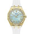 Часы Guess Dress 17300 — это изысканный аксессуар, который станет отличным дополнением к образу современной женщины. Эти наручные оснащены надежным кварцевым механизмом. Стальной корпус с золотистым IP-покрытиемIP-покрытиеМетод ионного напыления. Демонстрирует повышенную устойчивость к истиранию, окислению и химическим веществам. Под воздействием высокого давления и температуры около 1500°C молекулы металла надёжно соединяются с частицами корпуса часов. придаёт часам элегантный и стильный вид. Римские цифры обеспечивают удобное считывание времени и добавляют классический штрих. Люминесцентное покрытиеЛюминесцентное покрытиеПозволяет считывать показания времени в темноте. Производители наносят на стрелки, часовые индексы, безель или поверхность циферблата светонакопительный состав, дающий холодное свечение. на стрелках обеспечивает отличную видимость в темноте. Силиконовый браслет имеет белый цвет и гарантирует комфортное ношение и надежную фиксацию на запястье. Водозащита 50WR позволяет не беспокоиться о случайных брызгах и контакте с водой. Минеральное стеклоМинеральное стеклоМинеральное стекло представляет собой искусственно выращенный минерал кварца. Такое стекло отличается особой устойчивостью к повреждениям и царапинам. Уступает по некоторым качествам сапфировому стеклу. защищает циферблат от царапин и повреждений, обеспечивая долговечность и сохранность внешнего вида.