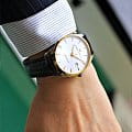 Мужские наручные часы Hamilton Jazzmaster Gent Quartz H32441551 с надёжным кварцевым механизмом. Корпус часов изготовлен из нержавеющей стали. Кожаный ремешок на стандартной застёжке. Окошко даты находится в положении 3 часа. Стрелки и метки с люминесцентным покрытиемЛюминесцентное покрытиеПозволяет считывать показания времени в темноте. Производители наносят на стрелки, часовые индексы, безель или поверхность циферблата светонакопительный состав, дающий холодное свечение.. Сапфировое стеклоСапфировое стеклоПрочный и надёжный материал из кристалла сапфира синтетического происхождения, характеризующийся особой твёрдостью и устойчивостью к царапинам и повреждениям. с антибликовым покрытием, устойчивое к мелким механическим повреждениям. Класс водозащиты: 50 метров, позволит защитить корпус от случайных брызг или капель дождя. БезельБезельВнешний ободок, закрепляющий стекло. В спортивных часах так называется поворотное кольцо с делениями на циферблате, выполняет роль таймера – замеряет отрезки времени на шкале. Неподвижный безель – элемент декора. Однонаправленно вращающийся безель на дайверских часах позволяет фиксировать моменты погружения и выныривания на поверхность. с PVD-покрытиемPVDУльтратонкое покрытие наносится в технике вакуумного напыления, сочетает в себе нитрид титана особой прочности со слоем золота или оксида хрома. Несёт в себе декоративную или защитную функцию..