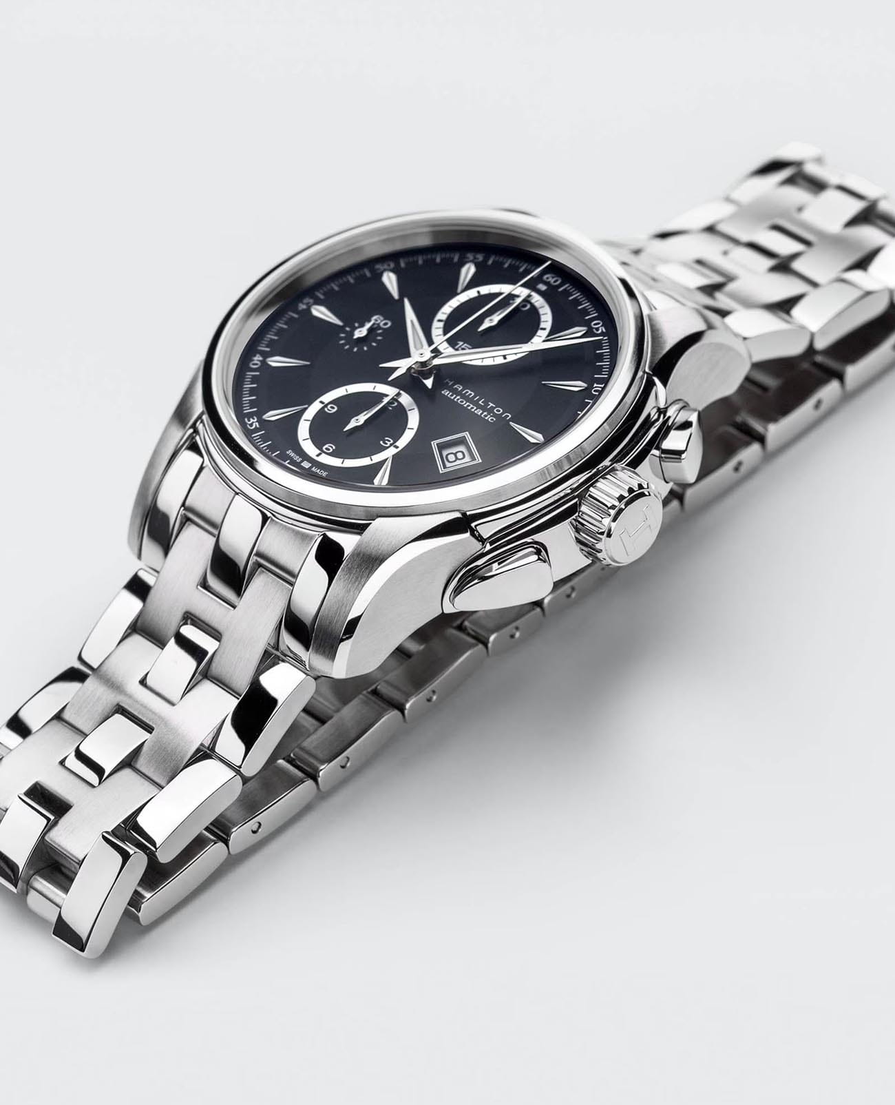 Jazzmaster Auto Chrono - это часы, которые легко приспосабливаются к ритмам современной жизни, продолжая при этом танцевать в такт собственному барабану. Для тех, кто любит традиции, но ценит инновации, модель H-21 с 60-часовым запасом хода выполнена в корпусе с плавными изгибами и чистыми линиями. Часы-хронографХронографФункция позволяет измерять отрезки времени с особой точностью: часы, минуты, секунды. Верным признаком хронографа является наличие на циферблате 3 дополнительных окошек-счётчиков. H32616133 с механическим механизмом (автоматический калибр) высокой точности. Сапфировое стеклоСапфировое стеклоПрочный и надёжный материал из кристалла сапфира синтетического происхождения, характеризующийся особой твёрдостью и устойчивостью к царапинам и повреждениям. устойчивое к появлению царапин, обладающее высокой прозрачностью. Класс водозащиты: 100 метров, позволит плавать, нырять и заниматься другими водными видами спорта. Корпус часов изготовлен из нержавеющей стали. Стальной браслет на застёжке-бабочке с кнопкамиЗастёжка "бабочка"Такой вид застёжки дополняется предохранителями, помогающими избежать случайного раскрытия браслета. Обладают изящным исполнением. . Окошко даты находится в положении 4 часа. Стрелки и метки с люминесцентным покрытиемЛюминесцентное покрытиеПозволяет считывать показания времени в темноте. Производители наносят на стрелки, часовые индексы, безель или поверхность циферблата светонакопительный состав, дающий холодное свечение..