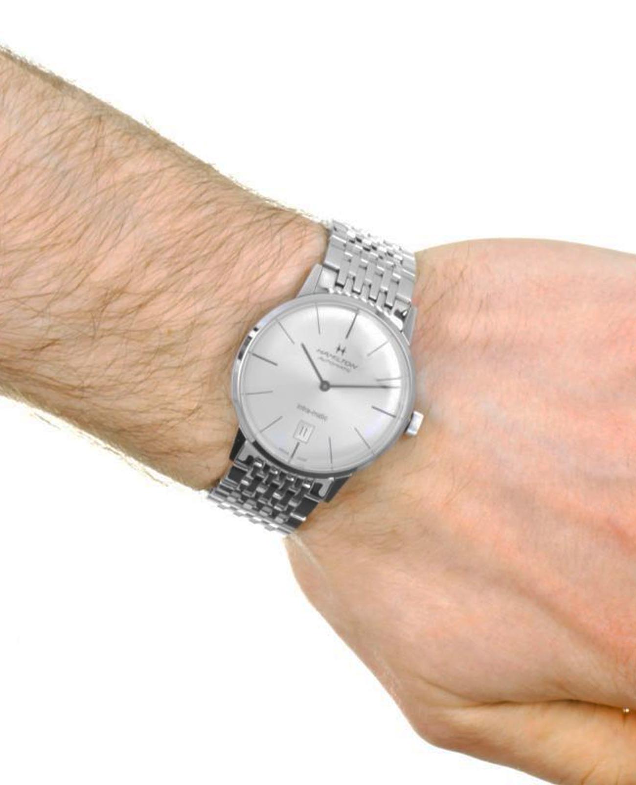 Мужские наручные часы Hamilton American Classic Intra-Matic Auto H38455151 с надёжным автоматическим механизмом. Корпус часов изготовлен из нержавеющей стали. Стальной браслет на застёжке-бабочке с кнопкамиЗастёжка "бабочка"Такой вид застёжки дополняется предохранителями, помогающими избежать случайного раскрытия браслета. Обладают изящным исполнением. . Сапфировое стеклоСапфировое стеклоПрочный и надёжный материал из кристалла сапфира синтетического происхождения, характеризующийся особой твёрдостью и устойчивостью к царапинам и повреждениям. с антибликовым покрытием. Окошко даты находится в положении 6 часов. Класс водозащиты: 50 метров, позволит защитить корпус от случайных брызг или капель дождя.