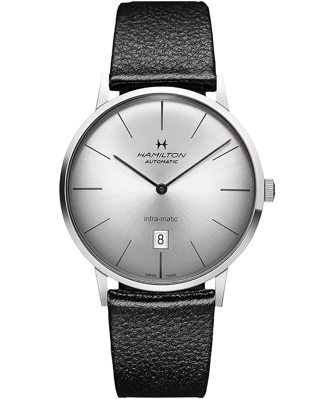 Мужские наручные часы Hamilton American Classic Intra-Matic Auto H38755751 с надёжным автоматическим механизмом. Корпус часов изготовлен из нержавеющей стали с PVD-покрытиемPVDУльтратонкое покрытие наносится в технике вакуумного напыления, сочетает в себе нитрид титана особой прочности со слоем золота или оксида хрома. Несёт в себе декоративную или защитную функцию.. Практичный кожаный ремешок на стандартной застёжке. Сапфировое стеклоСапфировое стеклоПрочный и надёжный материал из кристалла сапфира синтетического происхождения, характеризующийся особой твёрдостью и устойчивостью к царапинам и повреждениям. с антибликовым покрытием. Окошко даты находится в положении 6 часов. Класс водозащиты: 50 метров, позволит защитить корпус от случайных брызг или капель дождя.