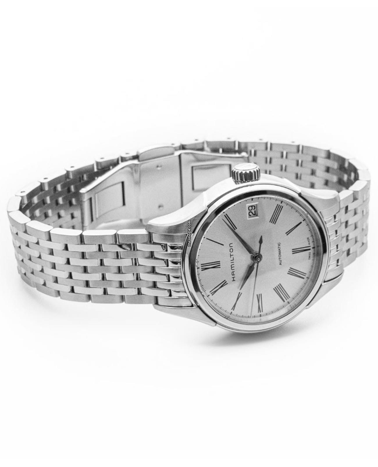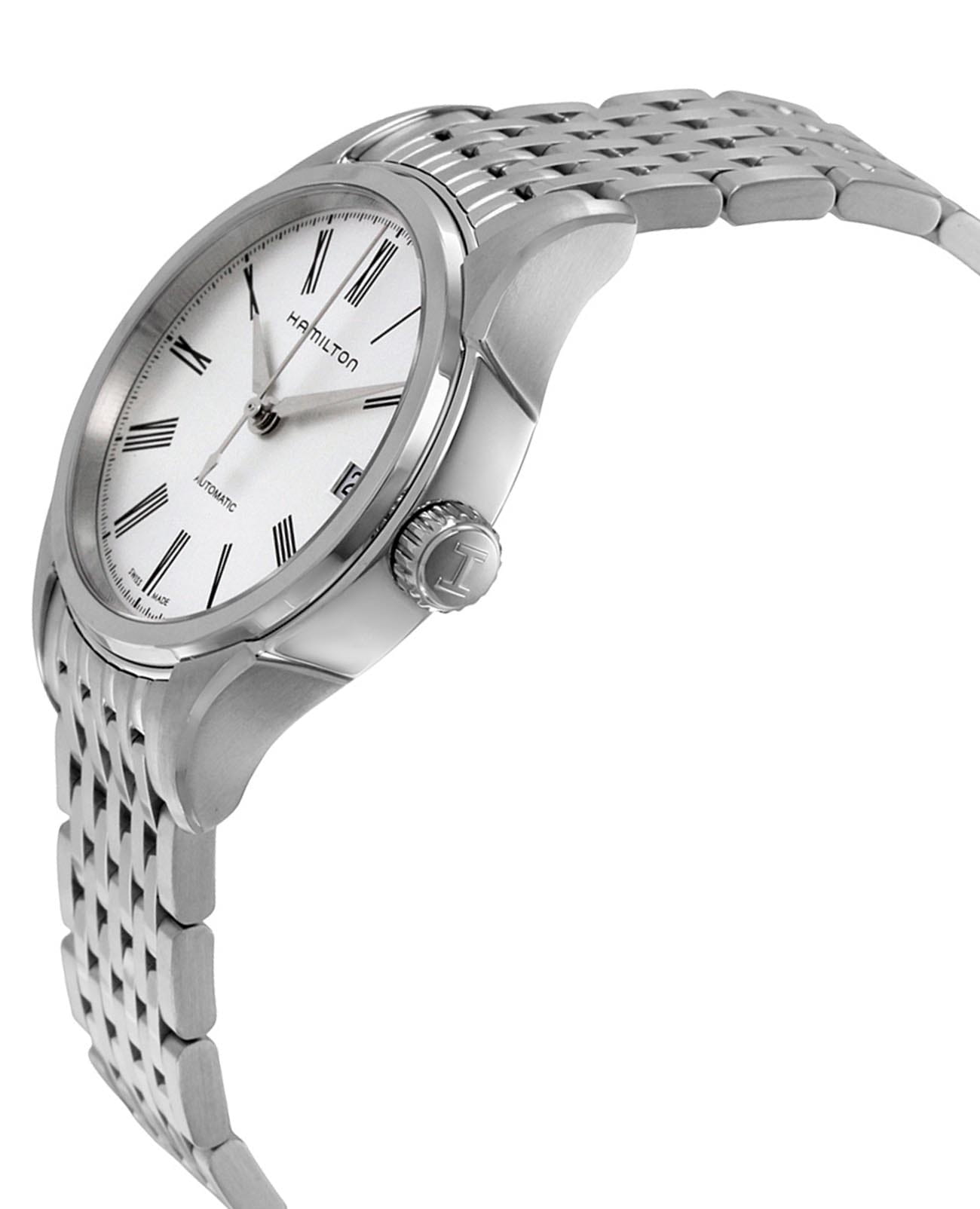 Мужские наручные часы Hamilton American Classic Valiant Auto H39415154 с автоматическим механизмом. Корпус часов выполнен из нержавеющей стали. Стальной браслет на застёжке-бабочке с кнопкамиЗастёжка "бабочка"Такой вид застёжки дополняется предохранителями, помогающими избежать случайного раскрытия браслета. Обладают изящным исполнением. . Сапфировое стеклоСапфировое стеклоПрочный и надёжный материал из кристалла сапфира синтетического происхождения, характеризующийся особой твёрдостью и устойчивостью к царапинам и повреждениям. с антибликовым покрытием. Окошко даты находится в положении 3 часа. Уровень влагозащиты: 50 метров, позволит защитить корпус от случайных брызг или капель дождя.