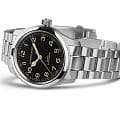 The Khaki Field Murph Auto. Одни из самых известных часов научной фантастики, известные поклонникам как "The Murphy", теперь заключены в компактный 38-миллиметровый корпус из нержавеющей стали. Ультрачитаемый циферблат, бежевые стрелки с люминесцентным покрытиемЛюминесцентное покрытиеПозволяет считывать показания времени в темноте. Производители наносят на стрелки, часовые индексы, безель или поверхность циферблата светонакопительный состав, дающий холодное свечение. Super-LumiNova ® в винтажном стиле и cтальной браслет на раскладной застёжкеРаскладная застёжкаТакой тип застёжки используется только на браслетах из металла. Она никогда не раскрывается полностью, происходит разделение на 2 и более частей. Раскладывающая застёжка снизит вероятность потери часов к минимуму.. отражают ключевые эстетические коды своего 42-миллиметрового предшественника. Эти часы, оснащенные механизмом с автоподзаводом H-10 и обладающие 80-часовым запасом хода, покорят сердца тех, кто любит часы меньшего размера.