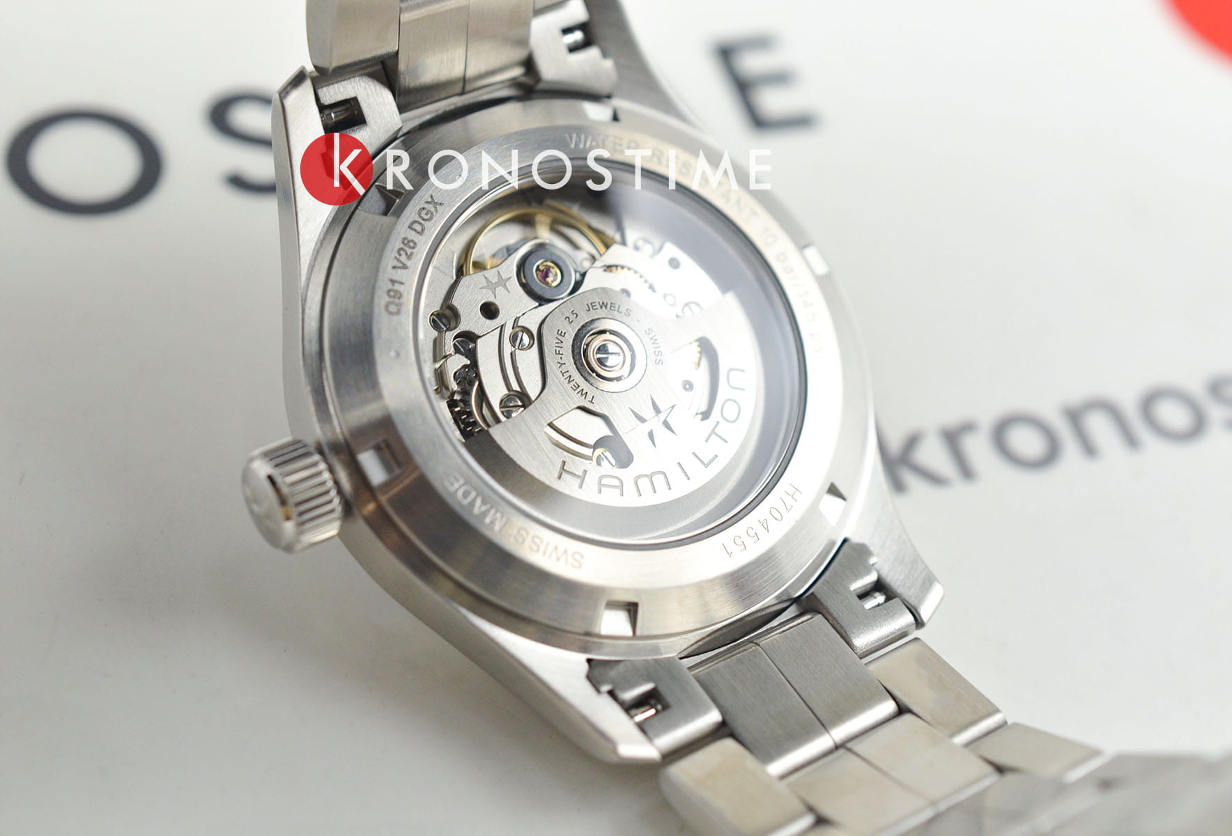 Hamilton Khaki Field Auto H70455140 — компактные полевые часы с военной эстетикой, надёжным механизмом и универсальным дизайном. Корпус диаметром 38 мм выполнен из нержавеющей стали с сатинированной отделкой. Прозрачная задняя крышка позволяет видеть работу механизма. Циферблат защищён сапфировым стекломСапфировое стеклоПрочный и надёжный материал из кристалла сапфира синтетического происхождения, характеризующийся особой твёрдостью и устойчивостью к царапинам и повреждениям. с антибликовым покрытиемАнтибликовое покрытиеСлой оксида металла в 0,13-0,3 микрон, благодаря которому стекло часов не бликует и не отражает свет. Антибликовое покрытие уменьшает отражение света в 10 раз, обеспечивая отличную читаемость показателей циферблата.. Синий циферблат с эффектом солнечных лучей оформлен в духе классических полевых часов: крупные арабские цифры, 24-часовая шкала, дата на позиции «3 часа». Стрелки и метки покрыты люминесцентным покрытиемЛюминесцентное покрытиеПозволяет считывать показания времени в темноте. Производители наносят на стрелки, часовые индексы, безель или поверхность циферблата светонакопительный состав, дающий холодное свечение. для читаемости в темноте. Внутри установлен автоматический механизм H-10 с запасом хода до 80 часов. Модель укомплектована браслетом из нержавеющей стали с раскладной застёжкойРаскладная застёжкаТакой тип застёжки используется только на браслетах из металла. Она никогда не раскрывается полностью, происходит разделение на 2 и более частей. Раскладывающая застёжка снизит вероятность потери часов к минимуму., обеспечивающей удобную посадку и надёжность. Водонепроницаемость 100 метров делает часы подходящими как для повседневной носки, так и для активного образа жизни. Khaki Field Auto 38 мм — это проверенная временем классика в современном исполнении.