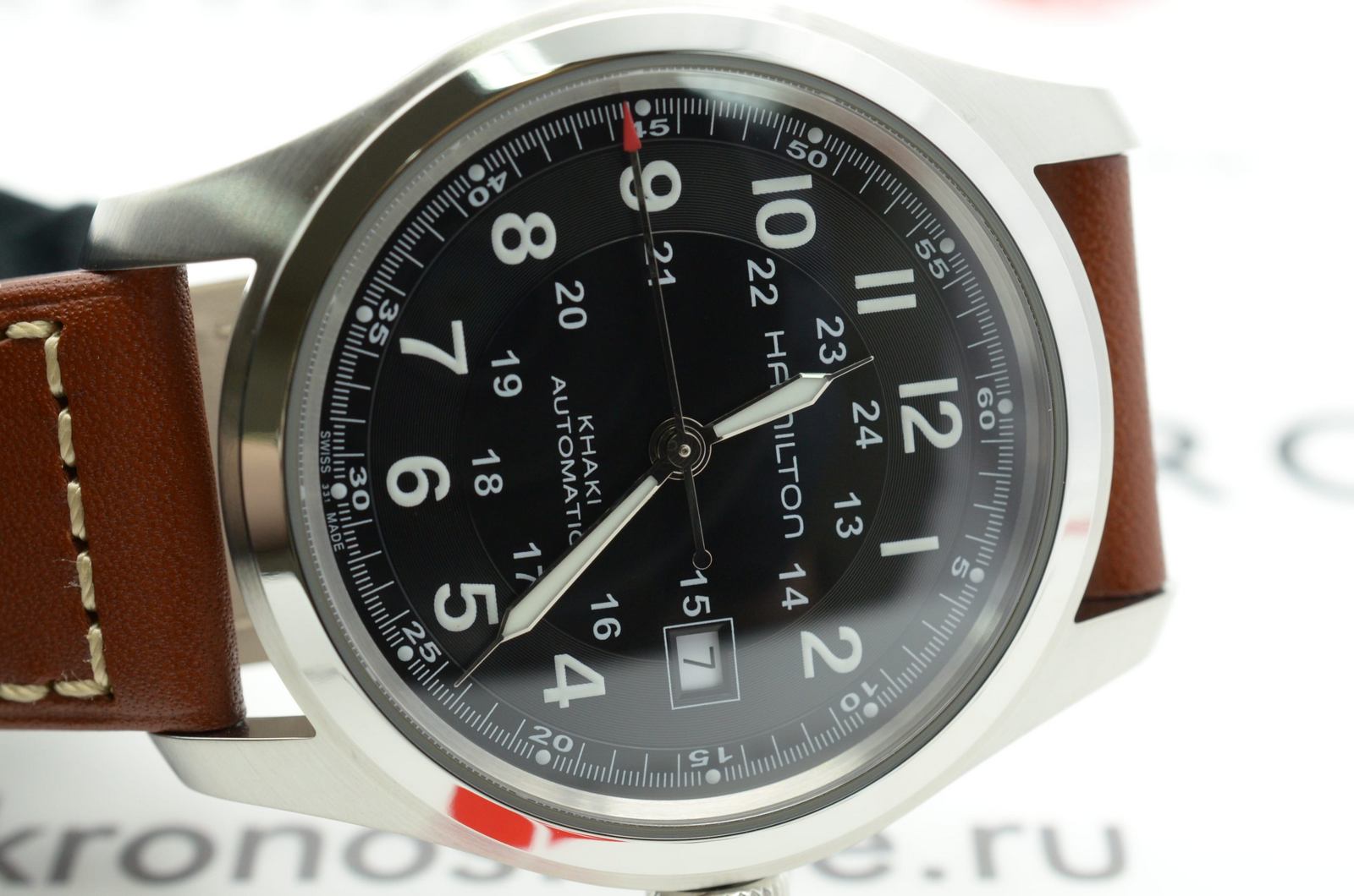 Мужские швейцарские механические часы Hamilton Khaki Field Auto H70555533, автоматический механизм с высокой точностью. Сапфировое стеклоСапфировое стеклоПрочный и надёжный материал из кристалла сапфира синтетического происхождения, характеризующийся особой твёрдостью и устойчивостью к царапинам и повреждениям. устойчивое к появлению царапин, обладающее высокой прозрачностью. Класс водозащиты: 100 метров, позволит плавать, нырять и заниматься другими водными видами спорта. Корпус часов изготовлен из стали. Стрелки с люминесцентным покрытиемЛюминесцентное покрытиеПозволяет считывать показания времени в темноте. Производители наносят на стрелки, часовые индексы, безель или поверхность циферблата светонакопительный состав, дающий холодное свечение.. Кожаный ремешок.
