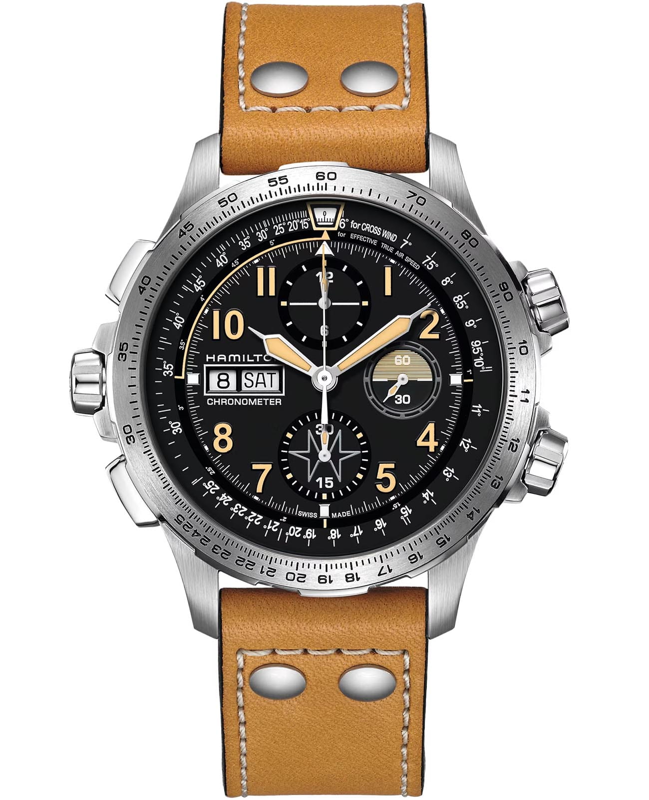 Швейцарские мужские механические часы Hamilton Khaki Aviation X-Wind Day Date Auto Chrono H77796535 с хронографом