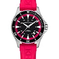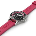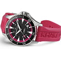 На пляже, у бассейна или в океанских глубинах: новая модель Khaki Navy Scuba гарантированно произведет фурор. Часы для современных мореплавателей, любителей подводного плавания, серфинга и пляжного отдыха с розовым каучуковым ремешком и контрастным черным циферблатом сочетают в себе эффектный дизайн и функциональность. Независимо от того, хронометрируете ли вы время плавания, бега или пребывания на солнце, они позаботятся о том, чтобы вы сохраняли спокойствие даже при высоких температурах. Сапфировое стеклоСапфировое стеклоПрочный и надёжный материал из кристалла сапфира синтетического происхождения, характеризующийся особой твёрдостью и устойчивостью к царапинам и повреждениям. устойчивое к появлению царапин, обладающее высокой прозрачностью.