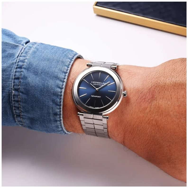Мужские механические часы с ручным заводом Herbelin Newport Slim 1222B15S – отражающий идеальное сочетание современного дизайна, надёжности и функциональности. Элегантный облик станет превосходным завершением образа, наделив его индивидуальным характером. Корпус из нержавеющей стали 316L идеально сбалансирован и элегантен. Сапфировое стеклоСапфировое стеклоПрочный и надёжный материал из кристалла сапфира синтетического происхождения, характеризующийся особой твёрдостью и устойчивостью к царапинам и повреждениям. защищает циферблат от царапин и устойчивое к механическим повреждениям. Изысканный cтальной браслет из нержавеющей стали на застёжке-бабочке с кнопкамиЗастёжка "бабочка"Такой вид застёжки дополняется предохранителями, помогающими избежать случайного раскрытия браслета. Обладают изящным исполнением. обеспечивает комфортное ношение. Водозащита 30 метров, позволит защитить корпус от случайных брызг или капель дождя. Эта модель – отличный выбор для тех, кто ищет сочетание стиля, качества и функциональности. Часы станут не только полезным аксессуаром, но и выразительным элементом вашего имиджа.