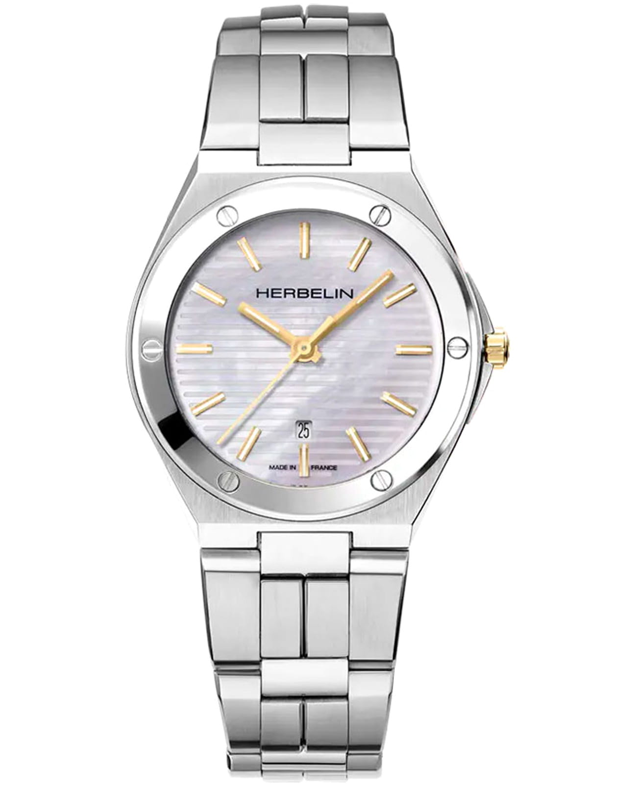 Женские кварцевые часы Herbelin Cap Camarat 14545B19T – отражающий идеальное сочетание современного дизайна, надёжности и функциональности. Элегантный облик станет превосходным завершением образа, наделив его индивидуальным характером. Корпус из нержавеющей стали серебристого цвета, диаметром 33 мм и толщиной 7.1 мм, идеально сбалансирован и элегантен. Сапфировое стеклоСапфировое стеклоПрочный и надёжный материал из кристалла сапфира синтетического происхождения, характеризующийся особой твёрдостью и устойчивостью к царапинам и повреждениям. защищает циферблат от царапин и устойчивое к механическим повреждениям. БезельБезельВнешний ободок, закрепляющий стекло. В спортивных часах так называется поворотное кольцо с делениями на циферблате, выполняет роль таймера – замеряет отрезки времени на шкале. Неподвижный безель – элемент декора. Однонаправленно вращающийся безель на дайверских часах позволяет фиксировать моменты погружения и выныривания на поверхность. украшен винтами, заводная головка с защитой. Окошко даты находится в положении 6 часов. Стрелки и метки с люминесцентным покрытиемЛюминесцентное покрытиеПозволяет считывать показания времени в темноте. Производители наносят на стрелки, часовые индексы, безель или поверхность циферблата светонакопительный состав, дающий холодное свечение.. Стальной браслет на застёжке-бабочке с кнопкамиЗастёжка "бабочка"Такой вид застёжки дополняется предохранителями, помогающими избежать случайного раскрытия браслета. Обладают изящным исполнением. обеспечивает комфортное ношение. Водозащита 100 метров позволит плавать, нырять и заниматься другими водными видами спорта. Эта модель – отличный выбор для тех, кто ищет сочетание стиля, качества и функциональности. Часы станут не только полезным аксессуаром, но и выразительным элементом вашего имиджа.