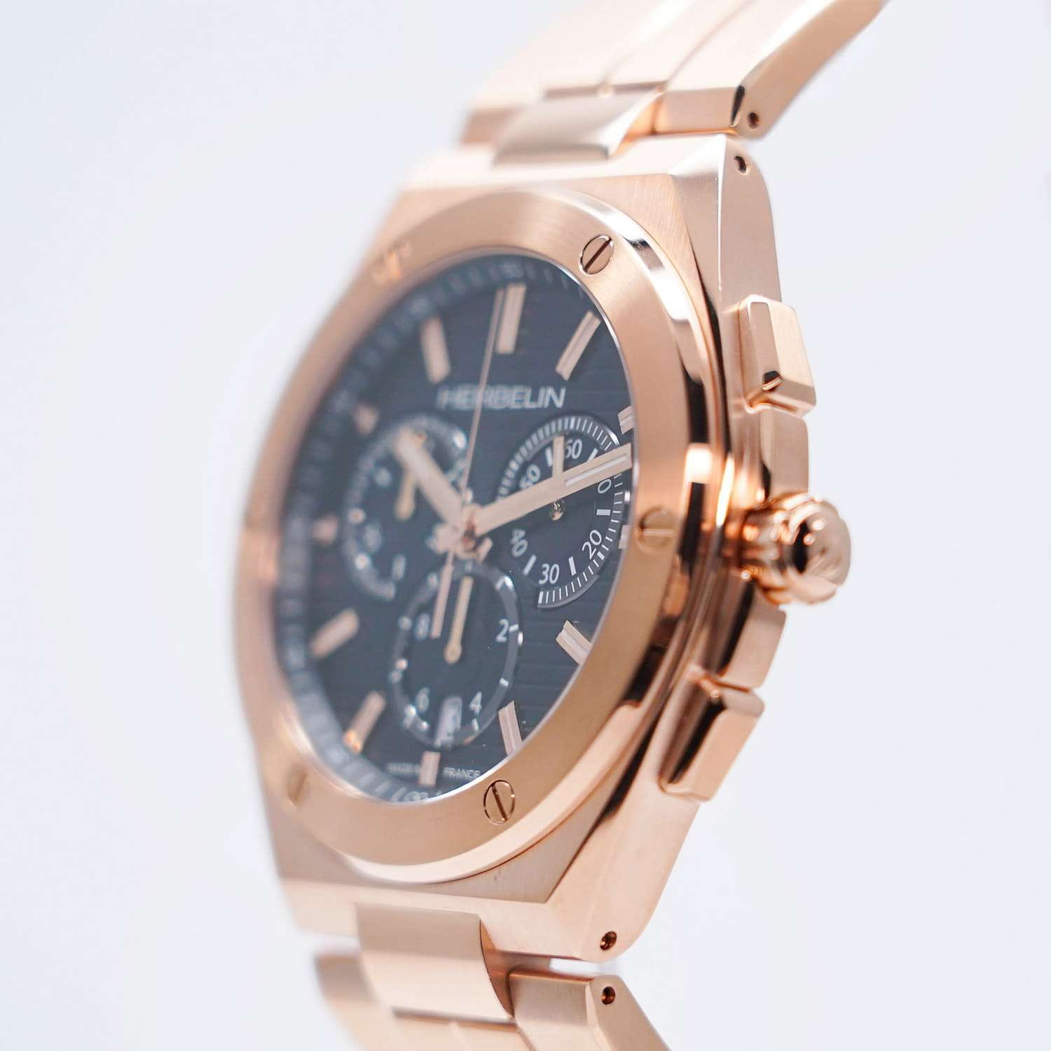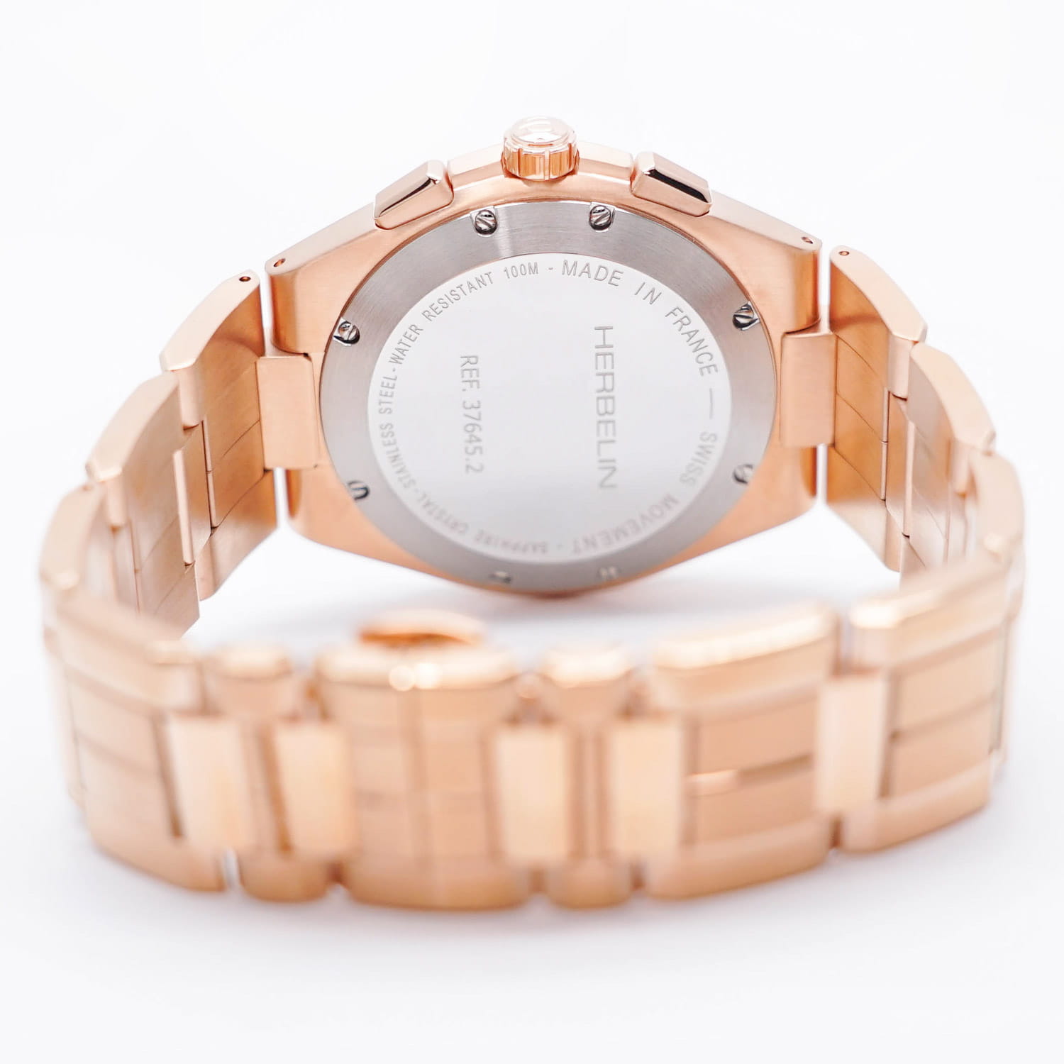 Мужские кварцевые наручные часы-хронографХронографФункция позволяет измерять отрезки времени с особой точностью: часы, минуты, секунды. Верным признаком хронографа является наличие на циферблате 3 дополнительных окошек-счётчиков. Herbelin Cap Camarat 37645BPR14 – отражающий идеальное сочетание современного дизайна, надёжности и функциональности. Элегантный облик станет превосходным завершением образа, наделив его индивидуальным характером. Корпус из нержавеющей стали с PVD-покрытиемPVDУльтратонкое покрытие наносится в технике вакуумного напыления, сочетает в себе нитрид титана особой прочности со слоем золота или оксида хрома. Несёт в себе декоративную или защитную функцию. цвета розового золота, диаметром 42 мм, идеально сбалансирован и элегантен. Сапфировое стеклоСапфировое стеклоПрочный и надёжный материал из кристалла сапфира синтетического происхождения, характеризующийся особой твёрдостью и устойчивостью к царапинам и повреждениям. защищает циферблат от царапин и устойчивое к механическим повреждениям. БезельБезельВнешний ободок, закрепляющий стекло. В спортивных часах так называется поворотное кольцо с делениями на циферблате, выполняет роль таймера – замеряет отрезки времени на шкале. Неподвижный безель – элемент декора. Однонаправленно вращающийся безель на дайверских часах позволяет фиксировать моменты погружения и выныривания на поверхность. украшен винтами, заводная головка с защитой. Окошко даты находится в положении 6 часов. Стрелки и метки с люминесцентным покрытиемЛюминесцентное покрытиеПозволяет считывать показания времени в темноте. Производители наносят на стрелки, часовые индексы, безель или поверхность циферблата светонакопительный состав, дающий холодное свечение.. Стальной браслет с PVD-покрытиемPVDУльтратонкое покрытие наносится в технике вакуумного напыления, сочетает в себе нитрид титана особой прочности со слоем золота или оксида хрома. Несёт в себе декоративную или защитную функцию. на застёжке-бабочке с кнопкамиЗастёжка "бабочка"Такой вид застёжки дополняется предохранителями, помогающими избежать случайного раскрытия браслета. Обладают изящным исполнением. обеспечивает комфортное ношение. Водозащита 100 метров позволит плавать, нырять и заниматься другими водными видами спорта. Эта модель – отличный выбор для тех, кто ищет сочетание стиля, качества и функциональности. Часы станут не только полезным аксессуаром, но и выразительным элементом вашего имиджа.