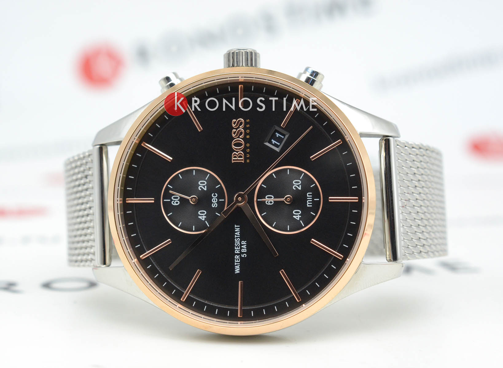 Мужские часы Hugo Boss Associate HB1513805 представлены в круглом 42-мм корпусе из нержавеющей стали с толщиной 9,9 мм. Оснащены кварцевым механизмом с функциями хронографаХронографФункция позволяет измерять отрезки времени с особой точностью: часы, минуты, секунды. Верным признаком хронографа является наличие на циферблате 3 дополнительных окошек-счётчиков., секундомеромСекундомерСекундоме́р — прибор, способный измерять интервалы времени с точностью до долей секунды. и индикацией даты на позиции 4 часа. Циферблат с подсветкой стрелок защищен устойчивым к царапинам минеральным стекломМинеральное стеклоМинеральное стекло представляет собой искусственно выращенный минерал кварца. Такое стекло отличается особой устойчивостью к повреждениям и царапинам. Уступает по некоторым качествам сапфировому стеклу.. Стальной браслет дополнен раскладной застёжкойРаскладная застёжкаТакой тип застёжки используется только на браслетах из металла. Она никогда не раскрывается полностью, происходит разделение на 2 и более частей. Раскладывающая застёжка снизит вероятность потери часов к минимуму. с фиксатором для надежной посадки. Водонепроницаемость 50 метров (5 ATM) обеспечивает защиту от брызг и дождя.