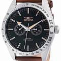 Мужские наручные часы Invicta Specialty IN45973 из коллекции Specialty сочетают в себе спортивный дизайн и надежность современных технологий. Модель обладает круглым корпусом диаметром 44 мм, выполненным из нержавеющей стали, что обеспечивает высокую устойчивость к внешним воздействиям. БезельБезельВнешний ободок, закрепляющий стекло. В спортивных часах так называется поворотное кольцо с делениями на циферблате, выполняет роль таймера – замеряет отрезки времени на шкале. Неподвижный безель – элемент декора. Однонаправленно вращающийся безель на дайверских часах позволяет фиксировать моменты погружения и выныривания на поверхность. украшен тахиметрической шкалой, придающей часам дополнительную элегантность. Кожаный ремешок на стандартной застежке, гарантирует комфортное ношение и безопасность. Черный циферблат дополнен метками в виде штрихов и светящимися стрелками с люминесцентным покрытиемЛюминесцентное покрытиеПозволяет считывать показания времени в темноте. Производители наносят на стрелки, часовые индексы, безель или поверхность циферблата светонакопительный состав, дающий холодное свечение. Tritnite, которые обеспечивают отличную видимость даже в темноте . На циферблате также вынесены отдельные окна для даты, дня недели и индикация 12-ти и 24-х часового формата времени . Для защиты используется минеральное стеклоМинеральное стеклоМинеральное стекло представляет собой искусственно выращенный минерал кварца. Такое стекло отличается особой устойчивостью к повреждениям и царапинам. Уступает по некоторым качествам сапфировому стеклу. Flame Fusion, которое обеспечивает прочность и устойчивость к царапинам . Часы оснащены кварцевым механизмом калибра Seiko TMI VH64, что гарантирует точность хода без необходимости подзаводки . Водонепроницаемость часов достигает 50 метров (5 атмосфер), что позволяет использовать их во время мытья рук или плавания, однако не рекомендуется для глубоководного дайвинга . Сочетание практичности, надежности и стильного дизайна делает эту модель универсальным аксессуаром как для повседневной носки, так и для занятий спортом .