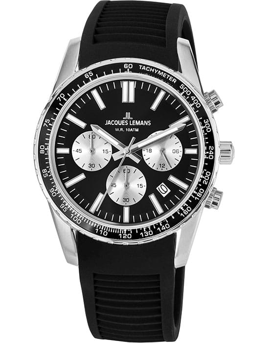Мужские часы-хронографХронографФункция позволяет измерять отрезки времени с особой точностью: часы, минуты, секунды. Верным признаком хронографа является наличие на циферблате 3 дополнительных окошек-счётчиков. Jacques Lemans 1-2059A представляют собой стильный аксессуар, отражающий идеальное сочетание современного дизайна, надёжности и функциональности. Компактные размеры и элегантный облик позволяют носить часы как со строгой рубашкой, так и с повседневными джинсами. Брендовая модель Jacques Lemans на вашем запястье сразу характеризует владельца как успешного человека с тонким вкусом. Наручные часы комплектуются японским механизмом, известным благодаря обеспечению абсолютной точности хода. Он защищён надёжным корпусом, препятствующий поломкам и повреждениям калибра. Модель прекрасно дополнит образ, наделив его французской элегантностью и австрийской практичностью. 24-х часовой индикатор, дата.