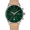 Мужские часы-хронографХронографФункция позволяет измерять отрезки времени с особой точностью: часы, минуты, секунды. Верным признаком хронографа является наличие на циферблате 3 дополнительных окошек-счётчиков. с секундомеромСекундомерСекундоме́р — прибор, способный измерять интервалы времени с точностью до долей секунды. Jacques Lemans Classic 1-2163D, кварцевый механизм с высокой точностью.  Минеральное стеклоМинеральное стеклоМинеральное стекло представляет собой искусственно выращенный минерал кварца. Такое стекло отличается особой устойчивостью к повреждениям и царапинам. Уступает по некоторым качествам сапфировому стеклу. устойчивое к мелким механическим повреждениям. Корпус часов изготовлен из стали. Окошко даты находится в положении 6 часов. Стрелки с люминесцентным покрытиемЛюминесцентное покрытиеПозволяет считывать показания времени в темноте. Производители наносят на стрелки, часовые индексы, безель или поверхность циферблата светонакопительный состав, дающий холодное свечение.. Класс водозащиты: 50 метров, позволит плавать, нырять и заниматься другими водными видами спорта. Кожаный ремешок на стандартной застёжке.