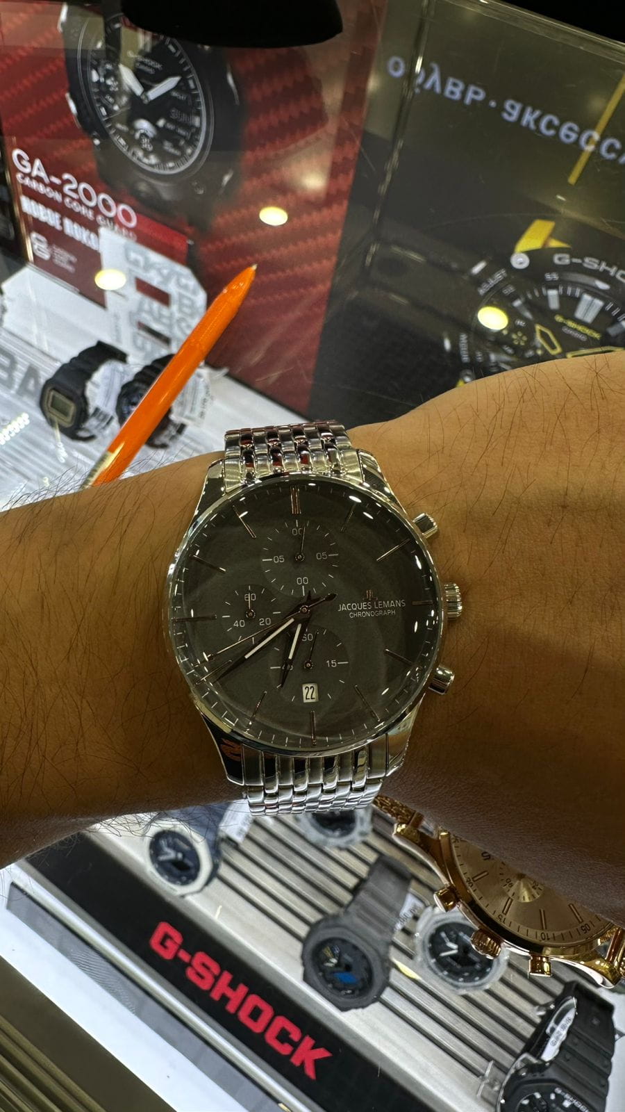Мужские часы Jacques London 1-2163i с минеральным стекломМинеральное стеклоМинеральное стекло представляет собой искусственно выращенный минерал кварца. Такое стекло отличается особой устойчивостью к повреждениям и царапинам. Уступает по некоторым качествам сапфировому стеклу., кварцевый механизм с высокой точностью.СекундомерСекундомерСекундоме́р — прибор, способный измерять интервалы времени с точностью до долей секунды.. Часы- хронографХронографФункция позволяет измерять отрезки времени с особой точностью: часы, минуты, секунды. Верным признаком хронографа является наличие на циферблате 3 дополнительных окошек-счётчиков.. Корпус часов из нержавеющей стали. Класс водозащиты: 50 метров, позволит защитить корпус от случайных брызг или капель дождя. Стальной браслет на раскладной застёжкеРаскладная застёжкаТакой тип застёжки используется только на браслетах из металла. Она никогда не раскрывается полностью, происходит разделение на 2 и более частей. Раскладывающая застёжка снизит вероятность потери часов к минимуму.. Окошко даты в положении 6 часов. Метки в виде штрихов. Стрелки с люминесцентным покрытиемЛюминесцентное покрытиеПозволяет считывать показания времени в темноте. Производители наносят на стрелки, часовые индексы, безель или поверхность циферблата светонакопительный состав, дающий холодное свечение..