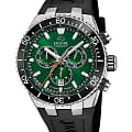 Мужские швейцарские часы-хронографХронографФункция позволяет измерять отрезки времени с особой точностью: часы, минуты, секунды. Верным признаком хронографа является наличие на циферблате 3 дополнительных окошек-счётчиков. Jaguar Ceramic J1021/2. Кварцевый швейцарский калибр Ronda 5030d. Сапфировое стеклоСапфировое стеклоПрочный и надёжный материал из кристалла сапфира синтетического происхождения, характеризующийся особой твёрдостью и устойчивостью к царапинам и повреждениям. устойчивое к мелким механическим повреждениям. Корпус часов изготовлен из нержавеющей стали. Стрелки и метки с люминесцентным покрытиемЛюминесцентное покрытиеПозволяет считывать показания времени в темноте. Производители наносят на стрелки, часовые индексы, безель или поверхность циферблата светонакопительный состав, дающий холодное свечение.. Окошко даты находится в положении 6 часов. Класс водозащиты: 100 метров, позволит плавать, нырять и заниматься другими водными видами спорта. Силиконовый ремешок на стандартной застёжке. БезельБезельВнешний ободок, закрепляющий стекло. В спортивных часах так называется поворотное кольцо с делениями на циферблате, выполняет роль таймера – замеряет отрезки времени на шкале. Неподвижный безель – элемент декора. Однонаправленно вращающийся безель на дайверских часах позволяет фиксировать моменты погружения и выныривания на поверхность. из черной высокотехнологичной керамики.