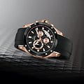 Мужские швейцарские часы-хронографХронографФункция позволяет измерять отрезки времени с особой точностью: часы, минуты, секунды. Верным признаком хронографа является наличие на циферблате 3 дополнительных окошек-счётчиков. Jaguar Special Edition J691/1. Кварцевый швейцарский калибр Ronda 5030.D. Сапфировое стеклоСапфировое стеклоПрочный и надёжный материал из кристалла сапфира синтетического происхождения, характеризующийся особой твёрдостью и устойчивостью к царапинам и повреждениям. устойчивое к мелким механическим повреждениям. Корпус часов изготовлен из нержавеющей стали с PVD-покрытиемPVDУльтратонкое покрытие наносится в технике вакуумного напыления, сочетает в себе нитрид титана особой прочности со слоем золота или оксида хрома. Несёт в себе декоративную или защитную функцию.. Стрелки и метки с люминесцентным покрытиемЛюминесцентное покрытиеПозволяет считывать показания времени в темноте. Производители наносят на стрелки, часовые индексы, безель или поверхность циферблата светонакопительный состав, дающий холодное свечение.. Окошко даты находится в положении между «3» и «6 часами». Класс водозащиты: 100 метров, позволит плавать, нырять и заниматься другими водными видами спорта. Силиконовый ремешок на стандартной застёжке. БезельБезельВнешний ободок, закрепляющий стекло. В спортивных часах так называется поворотное кольцо с делениями на циферблате, выполняет роль таймера – замеряет отрезки времени на шкале. Неподвижный безель – элемент декора. Однонаправленно вращающийся безель на дайверских часах позволяет фиксировать моменты погружения и выныривания на поверхность. с PVD-покрытиемPVDУльтратонкое покрытие наносится в технике вакуумного напыления, сочетает в себе нитрид титана особой прочности со слоем золота или оксида хрома. Несёт в себе декоративную или защитную функцию..