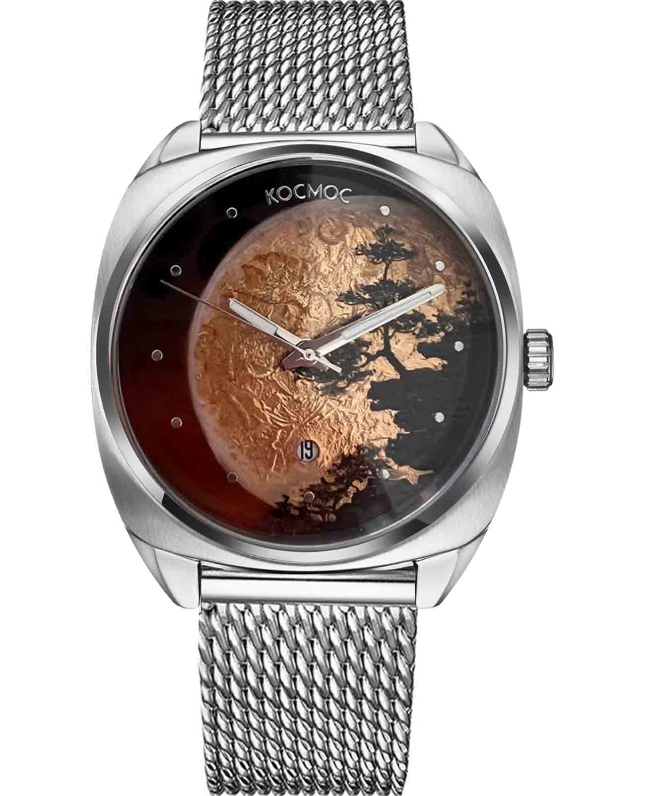 Российские мужские механические часы Космос D 113.1 - Суперлуние с автоподзаводом оснащены надежным механизмом TMI. Прямоугольный корпус из нержавеющей стали размером 50x44 мм защищен прочным минеральным стекломМинеральное стеклоМинеральное стекло представляет собой искусственно выращенный минерал кварца. Такое стекло отличается особой устойчивостью к повреждениям и царапинам. Уступает по некоторым качествам сапфировому стеклу.. Модель имеет класс водозащиты 100 метров, позволит плавать, заниматься другими водными видами спорта. циферблат дополнен функцией отображения даты. Часы комплектуются браслетом из нержавеющей стали с миланским плетением на раскладном замкеРаскладной замокДанный вариант застежки используется только на часах с металлическим браслетом. Отличительная особенность такого крепления в том, что длина браслета становится универсальной и вы можете самостоятельно отрегулировать нужный вам размер – застежка просто двигается по браслету часов.. Уникальный дизайн модели отражает тематику космических полетов, делая эти часы не только функциональным аксессуаром, но и стильным элементом гардероба для современного мужчины.