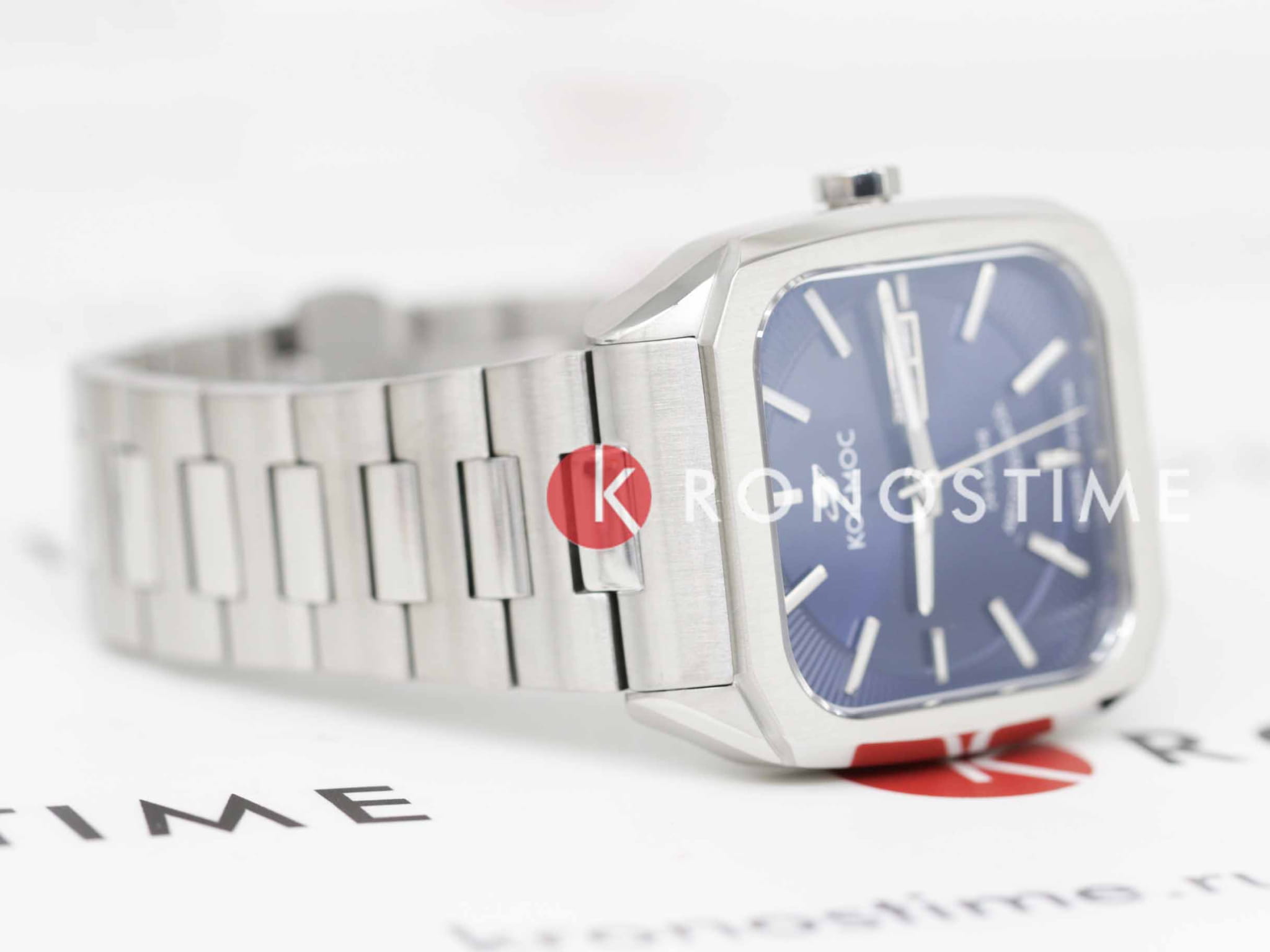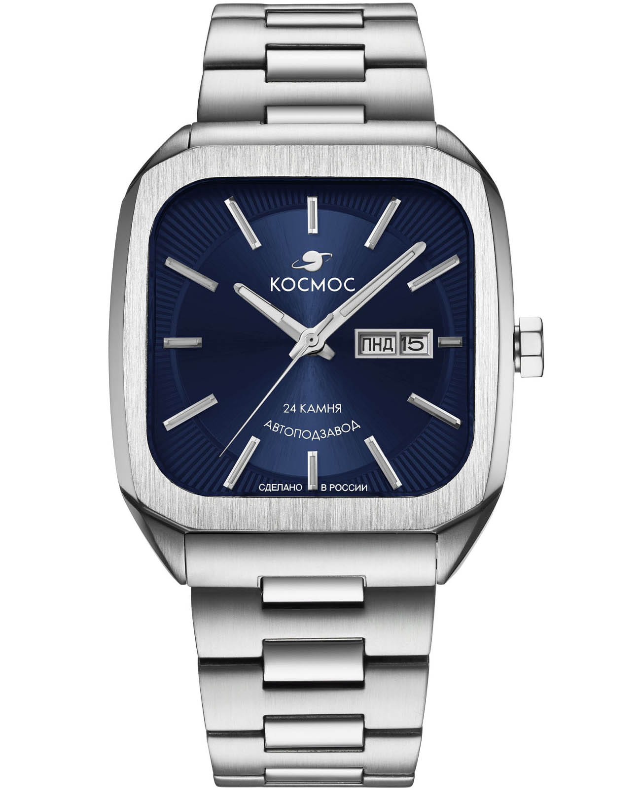 Мужские наручные часы Космос Марсоход K 213.10.36 — это уникальная лимитированная серия, посвященная аппарату, способному передвигаться по поверхности Красной планеты. Марсоход ассоциируется с брутальностью, мастерством и технической сложностью. Наша страна дважды запускала подобные аппараты еще в 70-х годах прошлого века. Дизайн часов серии Марсоход вдохновлен лучшими работами советских мастеров, сочетая современные технологии часового искусства с обаянием стиля ретро. Корпус в форме квадрата с закругленными углами выполнен из нержавеющей стали марки 316L, украшенной зеркальной полировкой и сатинированием. Удобная заводная головка имеет форму гайки, что добавляет модели индустриальный шарм. Задняя крышка прозрачная, закрепленная на четырех винтах, и позволяет увидеть работу механизма TMI с подвижным ротором, на котором гравируется надпись «Сделано в России». Также здесь представлена гравировка с изображением космонавта, придающая часам особую значимость. Водостойкость достигает 10 атм (WR100), что позволяет использовать часы при плавании и других водных видах спорта. На задней крышке указан индивидуальный номер модели в формате от 01/50 до 50/50 (первый выпуск) или от 051/200 до 200/200 (второй выпуск). Объемный циферблат состоит из двух уровней. В центре движутся три стрелки, часовая и минутная из которых имеют люминесцентное покрытиеЛюминесцентное покрытиеПозволяет считывать показания времени в темноте. Производители наносят на стрелки, часовые индексы, безель или поверхность циферблата светонакопительный состав, дающий холодное свечение., позволяющее определять время даже в темноте. Индексы накладные, как и стальная рамка, выделяющая сдвоенное окошко даты и дня недели, где день недели отображается на двух языках — русском и английском. Циферблат защищен прочным сапфировым стеклом с антибликовым покрытиемСапфировое стеклоПрочный и надёжный материал из кристалла сапфира синтетического происхождения, характеризующийся особой твёрдостью и устойчивостью к царапинам и повреждениям., обеспечивающим отличную читаемость показаний в любых условиях. Браслет изготовлен из литых стальных звеньев нержавеющей стали 316L и оснащен удобной застёжкой «бабочка» с кнопкамиЗастёжка "бабочка"Такой вид застёжки дополняется предохранителями, помогающими избежать случайного раскрытия браслета. Обладают изящным исполнением. , которая сводит к минимуму вероятность потери. Заводная головка, застежка и браслет украшены фирменным логотипом бренда. Коллекция Марсоход — идеальный выбор для ценителей истории космических достижений и современных технологий.