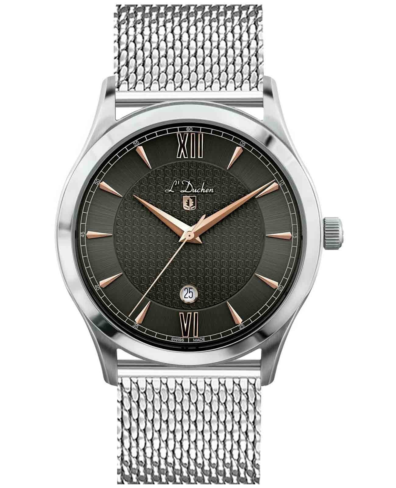 Мужские швейцарские часы L'Duchen Carcassonne D 761.12.12 M, кварцевый механизм с высокой точностью. Сапфировое стеклоСапфировое стеклоПрочный и надёжный материал из кристалла сапфира синтетического происхождения, характеризующийся особой твёрдостью и устойчивостью к царапинам и повреждениям. устойчивое к появлению царапин, обладающее высокой прозрачностью. Корпус часов выполнен из нержавеющей стали. Окошко даты находится в положении 6 часов. Класс водозащиты: 50 метров, позволит защитить корпус от случайных брызг или капель дождя. Стальной браслет миланского плетения на раскладном замкеРаскладной замокДанный вариант застежки используется только на часах с металлическим браслетом. Отличительная особенность такого крепления в том, что длина браслета становится универсальной и вы можете самостоятельно отрегулировать нужный вам размер – застежка просто двигается по браслету часов..