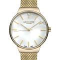 Женские наручные часы Lee Cooper LC07343.130 — это элегантная модель с утончённым дизайном. Корпус диаметром 35 мм выполнен из нержавеющей стали с IP-покрытиемIP-покрытиеМетод ионного напыления. Демонстрирует повышенную устойчивость к истиранию, окислению и химическим веществам. Под воздействием высокого давления и температуры около 1500°C молекулы металла надёжно соединяются с частицами корпуса часов., что придаёт часам изысканный вид. Перламутровый циферблат украшен изящными метками, стрелками и кристаллом на 12 часов обеспечивая удобное считывание времени. Циферблат защищён минеральным стекломМинеральное стеклоМинеральное стекло представляет собой искусственно выращенный минерал кварца. Такое стекло отличается особой устойчивостью к повреждениям и царапинам. Уступает по некоторым качествам сапфировому стеклу., устойчивым к царапинам. Часы работают на кварцевом механизме, обеспечивая точность хода. Браслет из нержавеющей стали с раскладной застёжкойРаскладная застёжкаТакой тип застёжки используется только на браслетах из металла. Она никогда не раскрывается полностью, происходит разделение на 2 и более частей. Раскладывающая застёжка снизит вероятность потери часов к минимуму. гарантирует комфортное ношение и надёжную фиксацию на запястье. Водозащита 30 метров защищает часы от случайных брызг и дождя, делая их подходящими для повседневного использования.