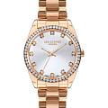 Женские наручные часы Lee Cooper LC07478.430 — это элегантная модель с утончённым дизайном. Корпус диаметром 34 мм выполнен из суперметалла с IP-покрытиемIP-покрытиеМетод ионного напыления. Демонстрирует повышенную устойчивость к истиранию, окислению и химическим веществам. Под воздействием высокого давления и температуры около 1500°C молекулы металла надёжно соединяются с частицами корпуса часов., что придаёт часам изысканный вид. Серебристый циферблат украшен изящными стрелками и вставками из циркония в виде меток, обеспечивая удобное считывание времени. Циферблат защищён минеральным стекломМинеральное стеклоМинеральное стекло представляет собой искусственно выращенный минерал кварца. Такое стекло отличается особой устойчивостью к повреждениям и царапинам. Уступает по некоторым качествам сапфировому стеклу., устойчивым к царапинам. Часы работают на кварцевом механизме, обеспечивая точность хода. Браслет из нержавеющей стали с раскладной застёжкойРаскладная застёжкаТакой тип застёжки используется только на браслетах из металла. Она никогда не раскрывается полностью, происходит разделение на 2 и более частей. Раскладывающая застёжка снизит вероятность потери часов к минимуму. гарантирует комфортное ношение и надёжную фиксацию на запястье. Водозащита 30 метров защищает часы от случайных брызг и дождя, делая их подходящими для повседневного использования. БезельБезельВнешний ободок, закрепляющий стекло. В спортивных часах так называется поворотное кольцо с делениями на циферблате, выполняет роль таймера – замеряет отрезки времени на шкале. Неподвижный безель – элемент декора. Однонаправленно вращающийся безель на дайверских часах позволяет фиксировать моменты погружения и выныривания на поверхность. инкрустирован кристаллами. Стрелки покрыты люминесцентным покрытиемЛюминесцентное покрытиеПозволяет считывать показания времени в темноте. Производители наносят на стрелки, часовые индексы, безель или поверхность циферблата светонакопительный состав, дающий холодное свечение., обеспечивая удобное считывание показаний в условиях недостаточного освещения.
