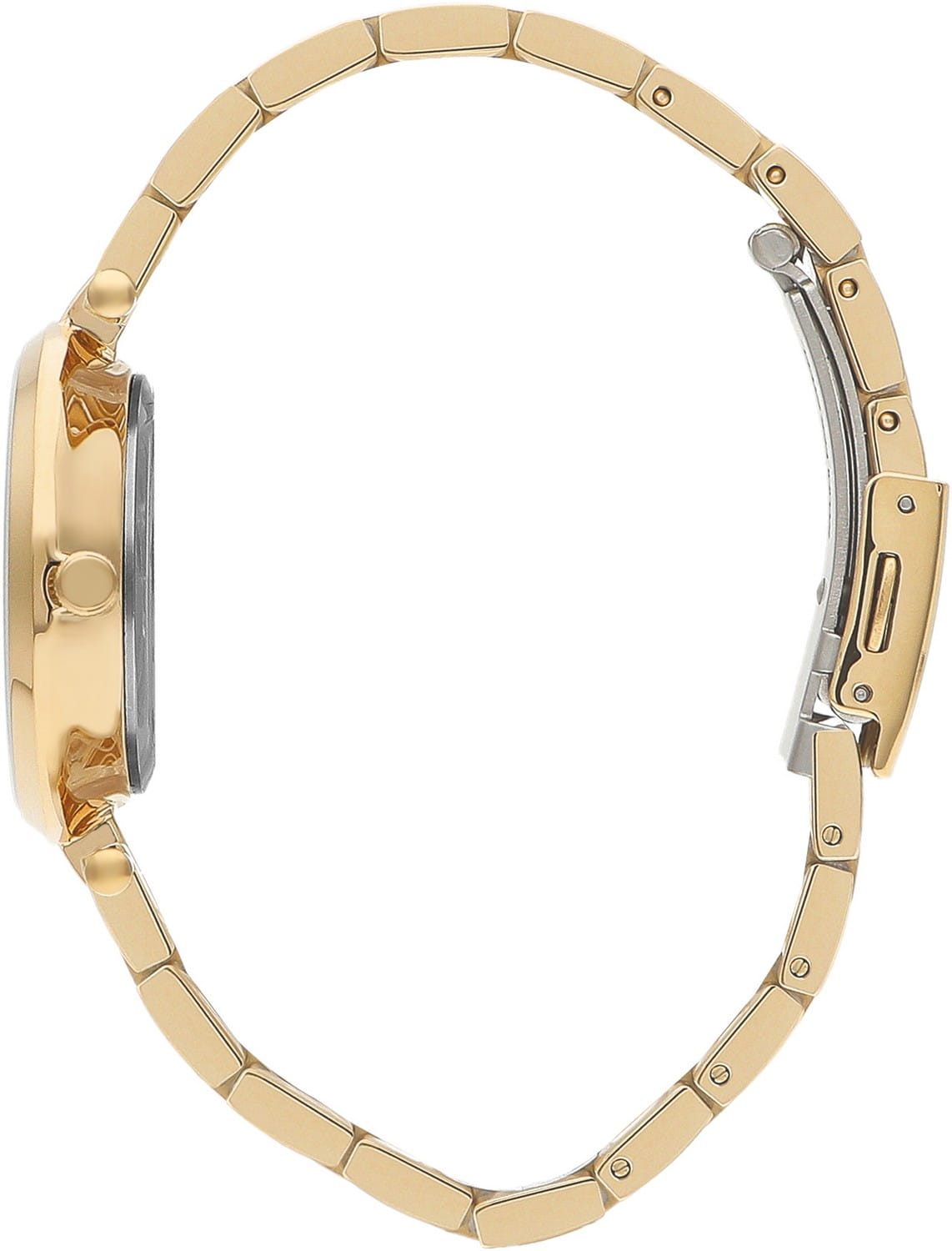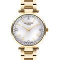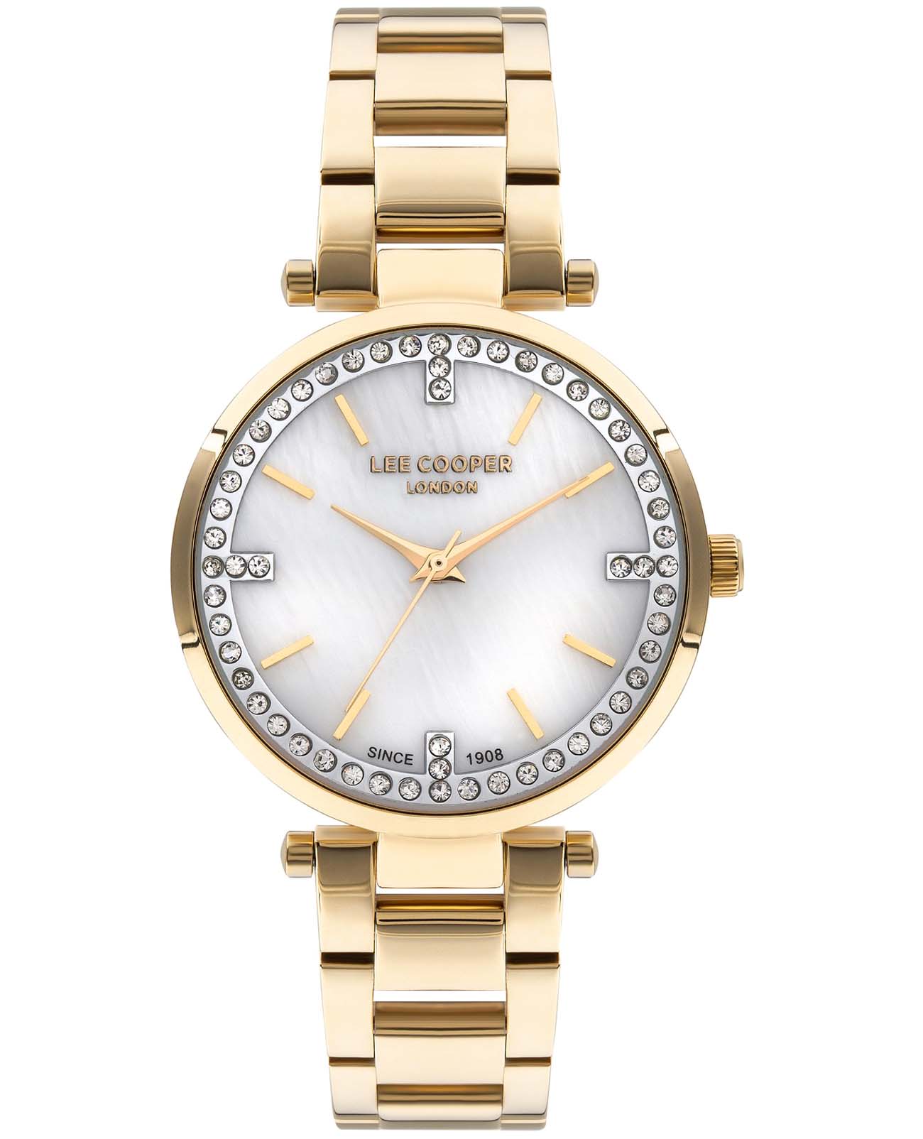 Женские часы Lee Cooper LC07591.120 — это стильное сочетание элегантности и современного дизайна. Круглый корпус диаметром 33 мм выполнен из суперметалла с IP-покрытиемIP-покрытиеМетод ионного напыления. Демонстрирует повышенную устойчивость к истиранию, окислению и химическим веществам. Под воздействием высокого давления и температуры около 1500°C молекулы металла надёжно соединяются с частицами корпуса часов. золотого цвета. Серебристый циферблат инкрустирован цирконами, что придает модели особый блеск и защищен минеральным стекломМинеральное стеклоМинеральное стекло представляет собой искусственно выращенный минерал кварца. Такое стекло отличается особой устойчивостью к повреждениям и царапинам. Уступает по некоторым качествам сапфировому стеклу., обеспечивающим устойчивость к царапинам. Центральные часовая, минутная и секундная стрелки. Часы оснащены надежным кварцевым механизмом, источник питания - батарейка. Металлический браслет с IP-покрытиемIP-покрытиеМетод ионного напыления. Демонстрирует повышенную устойчивость к истиранию, окислению и химическим веществам. Под воздействием высокого давления и температуры около 1500°C молекулы металла надёжно соединяются с частицами корпуса часов. на раскладной застёжкеРаскладная застёжкаТакой тип застёжки используется только на браслетах из металла. Она никогда не раскрывается полностью, происходит разделение на 2 и более частей. Раскладывающая застёжка снизит вероятность потери часов к минимуму. гарантирует комфортную посадку на запястье. Водозащита 30 метров защищает модель от случайных брызг и дождя. Lee Cooper  — отличный выбор для тех, кто ценит утонченность и качество.