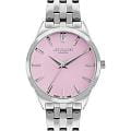 Женские часы Lee Cooper LC07833.380 — это стильное сочетание элегантности и современного дизайна. Изысканный круглый корпус диаметром 34 мм выполнен из суперметалла, что придает модели особый блеск. Розовый циферблат защищен минеральным стекломМинеральное стеклоМинеральное стекло представляет собой искусственно выращенный минерал кварца. Такое стекло отличается особой устойчивостью к повреждениям и царапинам. Уступает по некоторым качествам сапфировому стеклу., обеспечивающим устойчивость к царапинам. Метки в виде лаконичных серебристых штрихов. Часы оснащены надежным кварцевым механизмом, а изящный стальной браслет на раскладной застёжкеРаскладная застёжкаТакой тип застёжки используется только на браслетах из металла. Она никогда не раскрывается полностью, происходит разделение на 2 и более частей. Раскладывающая застёжка снизит вероятность потери часов к минимуму. гарантирует комфортную посадку на запястье. Водозащита 30 метров защищает модель от случайных брызг и дождя. Lee Cooper  — отличный выбор для тех, кто ценит утонченность и качество.