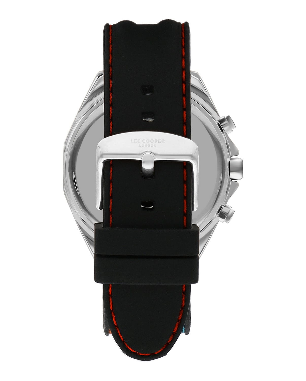 Мужские часы Lee Cooper LC07848.351 выполнены в классическом стиле и сочетают строгий дизайн с надёжным механизмом. Модель оснащена кварцевым механизмом, обеспечивающим точность хода и минимальное обслуживание. Корпус имеет размер 45 мм, изготовлен из суперметалла с безелемБезельВнешний ободок, закрепляющий стекло. В спортивных часах так называется поворотное кольцо с делениями на циферблате, выполняет роль таймера – замеряет отрезки времени на шкале. Неподвижный безель – элемент декора. Однонаправленно вращающийся безель на дайверских часах позволяет фиксировать моменты погружения и выныривания на поверхность. с IP-покрытиемIP-покрытиеМетод ионного напыления. Демонстрирует повышенную устойчивость к истиранию, окислению и химическим веществам. Под воздействием высокого давления и температуры около 1500°C молекулы металла надёжно соединяются с частицами корпуса часов.. Циферблат черного цвета дополнен индексами для чёткого отсчёта времени, а также функциями отображения даты, дня недели, 24-часового индикатора и второго часового поясаВторой часовой поясФункция, позволяющая отображать время двух часовых поясов одновременно.. Защиту циферблата обеспечивает минеральное стеклоМинеральное стеклоМинеральное стекло представляет собой искусственно выращенный минерал кварца. Такое стекло отличается особой устойчивостью к повреждениям и царапинам. Уступает по некоторым качествам сапфировому стеклу., устойчивое к мелким механическим повреждениям. Циферблат украшен стрелками и метками с люминесцентным покрытиемЛюминесцентное покрытиеПозволяет считывать показания времени в темноте. Производители наносят на стрелки, часовые индексы, безель или поверхность циферблата светонакопительный состав, дающий холодное свечение., гармонично дополняющим общий дизайн модели. Ремень из каучука оснащен стандартной застежкой, обеспечивающим комфортное и безопасное ношение. Водозащита 5 АТМ позволяет использовать часы в повседневных условиях без риска повреждения от случайных брызг воды. Это сочетание классического дизайна, прочности материалов и качества исполнения для уверенных в себе мужчин.