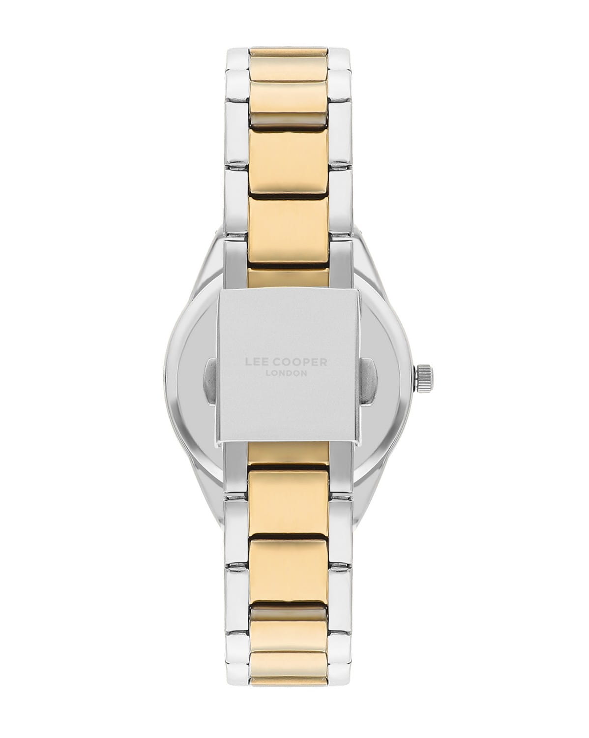 Женские часы Lee Cooper LC07863.230 — это стильное сочетание элегантности и современного дизайна. Круглый корпус диаметром 34 мм выполнен из суперметалла, а неподвижный безельБезельВнешний ободок, закрепляющий стекло. В спортивных часах так называется поворотное кольцо с делениями на циферблате, выполняет роль таймера – замеряет отрезки времени на шкале. Неподвижный безель – элемент декора. Однонаправленно вращающийся безель на дайверских часах позволяет фиксировать моменты погружения и выныривания на поверхность. украшен цирконами, придающими модели особый блеск. Серебристый циферблат защищен минеральным стекломМинеральное стеклоМинеральное стекло представляет собой искусственно выращенный минерал кварца. Такое стекло отличается особой устойчивостью к повреждениям и царапинам. Уступает по некоторым качествам сапфировому стеклу., обеспечивающим устойчивость к царапинам. Метки в виде штрихов. Часы оснащены надежным кварцевым механизмом, а металлический браслет с IP-покрытиемIP-покрытиеМетод ионного напыления. Демонстрирует повышенную устойчивость к истиранию, окислению и химическим веществам. Под воздействием высокого давления и температуры около 1500°C молекулы металла надёжно соединяются с частицами корпуса часов. на раскладной застёжкеРаскладная застёжкаТакой тип застёжки используется только на браслетах из металла. Она никогда не раскрывается полностью, происходит разделение на 2 и более частей. Раскладывающая застёжка снизит вероятность потери часов к минимуму. гарантирует комфортную посадку на запястье. Мультифункциональная модель с индикацией даты, дня недели, с дополнительным 24-х часовым индикатором. Водозащита 30 метров защищает модель от случайных брызг и дождя. Lee Cooper — отличный выбор для тех, кто ценит утонченность и качество.