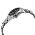Чёрный циферблат с серебристыми стрелками и метками создаёт стильный и современный образ.