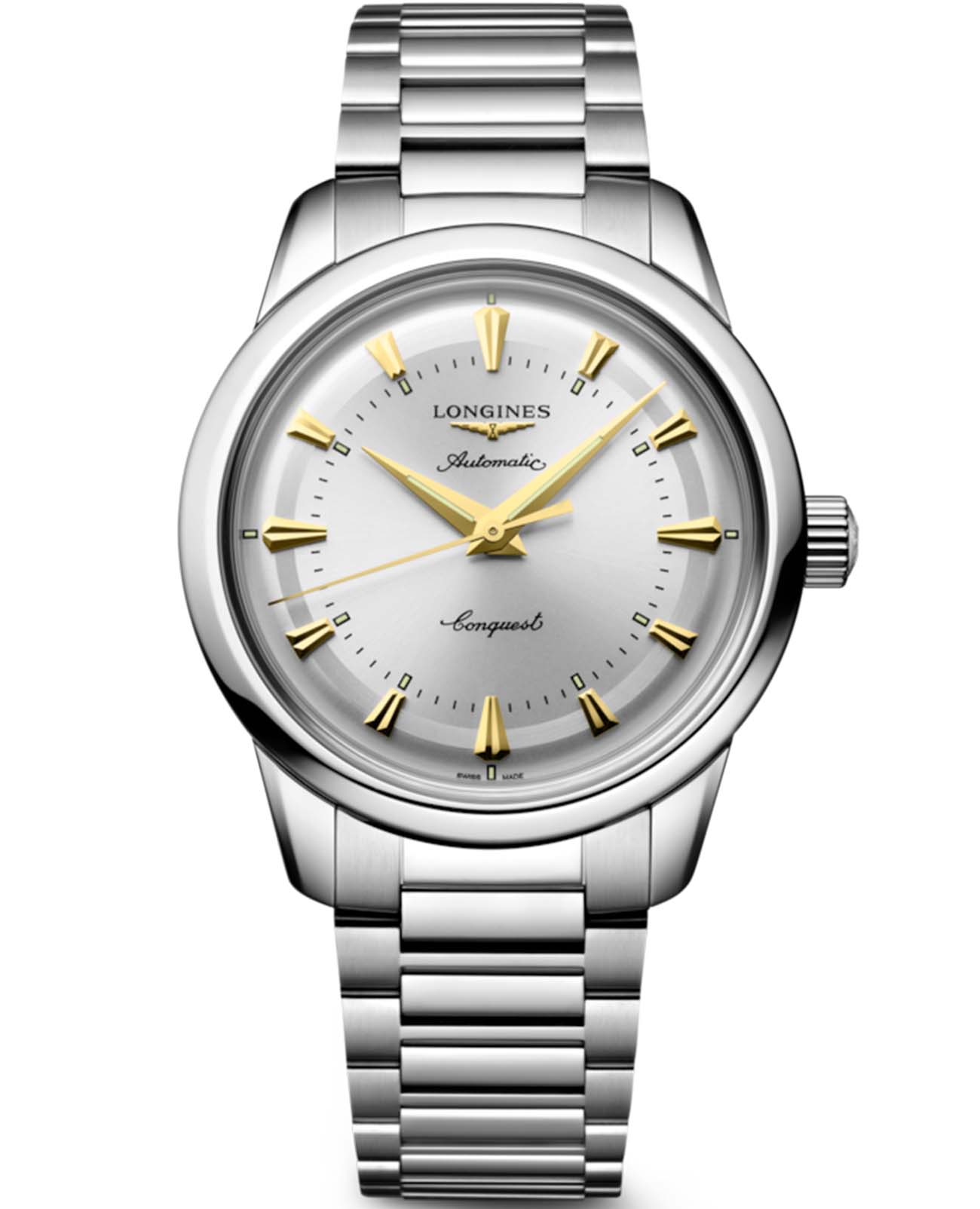 Longines Conquest Heritage L1.649.4.72.6 — это часы, созданные в честь легендарных моделей Conquest, впервые представленных более 70 лет назад. Эта модель сочетает в себе изысканный винтажный дизайн с инновационными современными технологиями швейцарского часового искусства. Корпус и браслет выполнены из высококачественной нержавеющей стали 316L, на серебристом полированном циферблате располагаются полированные стрелки с люминесцентным покрытиемЛюминесцентное покрытиеПозволяет считывать показания времени в темноте. Производители наносят на стрелки, часовые индексы, безель или поверхность циферблата светонакопительный состав, дающий холодное свечение. Swiss Super-LumiNova для отличной читаемости в любое время суток. Механизм часов — автоматический калибр Longines L888 с частотой 25 200 полуколебаний в час и монокристаллической кремниевой спиралью баланса, что обеспечивает высокий уровень точности и запас хода до 72 часов. Модель устойчива к магнитным полям, а надежность и долговечность гарантирует сапфировое стеклоСапфировое стеклоПрочный и надёжный материал из кристалла сапфира синтетического происхождения, характеризующийся особой твёрдостью и устойчивостью к царапинам и повреждениям. с многослойным антибликовым покрытием с обеих сторон. Особое внимание заслуживает медальон из золота 18 карат с изображением рыбы на задней крышке, добавляющий часам уникальности. Браслет оснащён двойной раскладной застёжкойРаскладная застёжкаТакой тип застёжки используется только на браслетах из металла. Она никогда не раскрывается полностью, происходит разделение на 2 и более частей. Раскладывающая застёжка снизит вероятность потери часов к минимуму. с системой микрорегулировки, обеспечивая максимальный комфорт при носке. Класс водозащиты 5 бар (50 метров) позволяет не снимать часы при мытье рук или во время прогулки под дождём. Завинчивающаяся заводная головка защищает механизм от попадания влаги и пыли. Диаметр корпуса составляет 38 мм, а толщина — 10,8 мм.