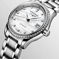 Женские швейцарские механические часы с автоподзаводом Longines Master Collection L2.128.0.87.6. Сапфировое стеклоСапфировое стеклоПрочный и надёжный материал из кристалла сапфира синтетического происхождения, характеризующийся особой твёрдостью и устойчивостью к царапинам и повреждениям. устойчивое к появлению царапин, обладающее высокой прозрачностью. Корпус часов изготовлен из нержавеющей стали. БезельБезельВнешний ободок, закрепляющий стекло. В спортивных часах так называется поворотное кольцо с делениями на циферблате, выполняет роль таймера – замеряет отрезки времени на шкале. Неподвижный безель – элемент декора. Однонаправленно вращающийся безель на дайверских часах позволяет фиксировать моменты погружения и выныривания на поверхность. украшен бриллиантами. Циферблат инкрустирован 12 бриллиантами 0,41 карата. Окошко даты в положении 3 часов. Прозрачная задняя крышка. Класс водозащиты: 30 метров, позволит защитить корпус от случайных брызг или капель дождя. Стальной браслет на застёжке «бабочка» с кнопкамиЗастёжка "бабочка"Такой вид застёжки дополняется предохранителями, помогающими избежать случайного раскрытия браслета. Обладают изящным исполнением. .