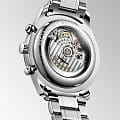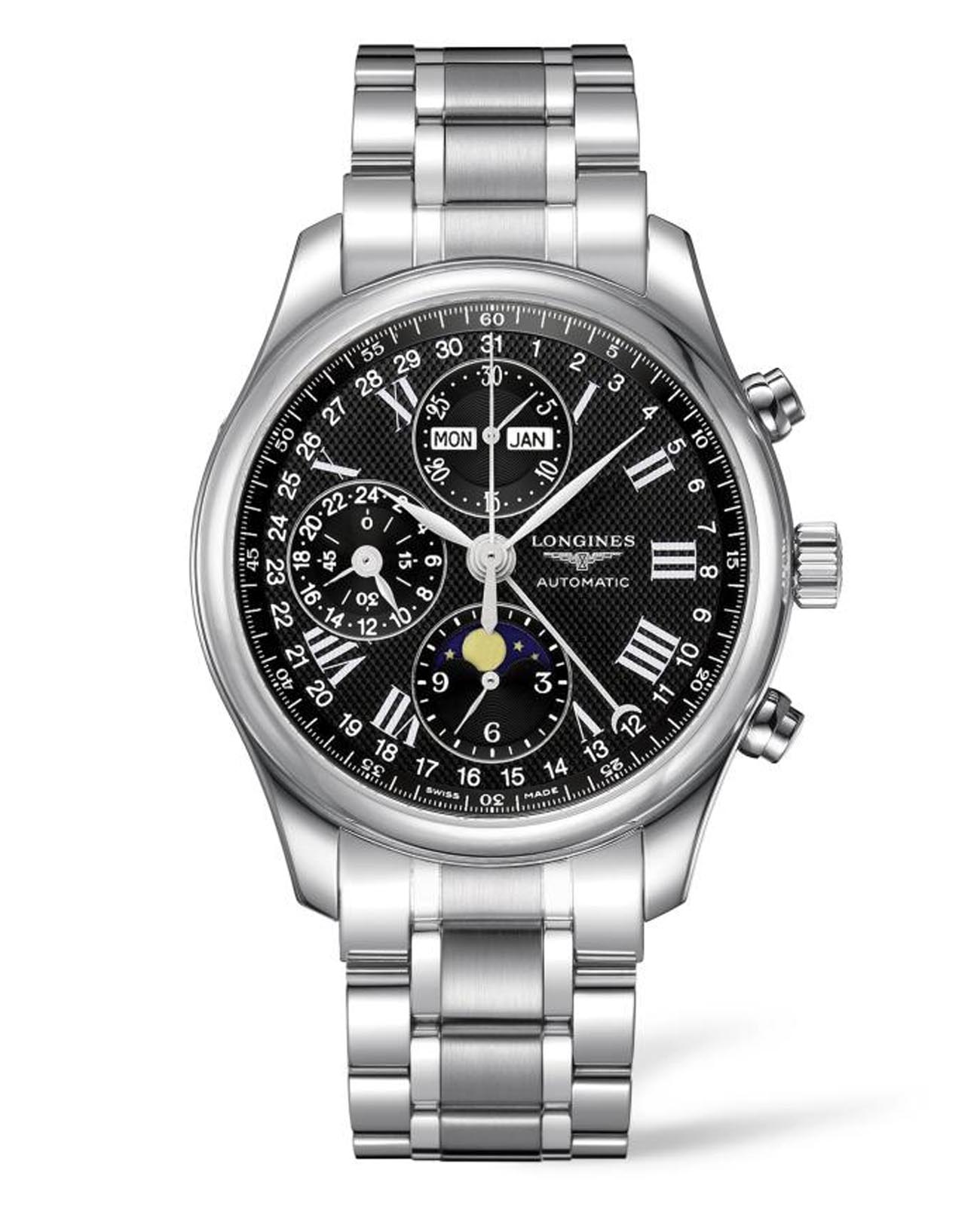 Мужсике швейцарские механические часы-хронографХронографФункция позволяет измерять отрезки времени с особой точностью: часы, минуты, секунды. Верным признаком хронографа является наличие на циферблате 3 дополнительных окошек-счётчиков. с автоподзаводом Longines Master Collection L2.773.4.51.6. Сапфировое стеклоСапфировое стеклоПрочный и надёжный материал из кристалла сапфира синтетического происхождения, характеризующийся особой твёрдостью и устойчивостью к царапинам и повреждениям. устойчивое к появлению царапин, обладающее высокой прозрачностью. Корпус часов изготовлен из нержавеющей стали. Функции: часы, минуты, малая секундная стрелка с 24-часовым индикатором в положении 9 часов. Дату показывает центральная стрелка с серповидным наконечником. Указатель фаз Луны в положении 6 часов. Прозрачная задняя крышка. Класс водозащиты: 30 метров, позволит защитить корпус от случайных брызг или капель дождя. Стальной браслет на застёжке «бабочка» с кнопкамиЗастёжка "бабочка"Такой вид застёжки дополняется предохранителями, помогающими избежать случайного раскрытия браслета. Обладают изящным исполнением. .