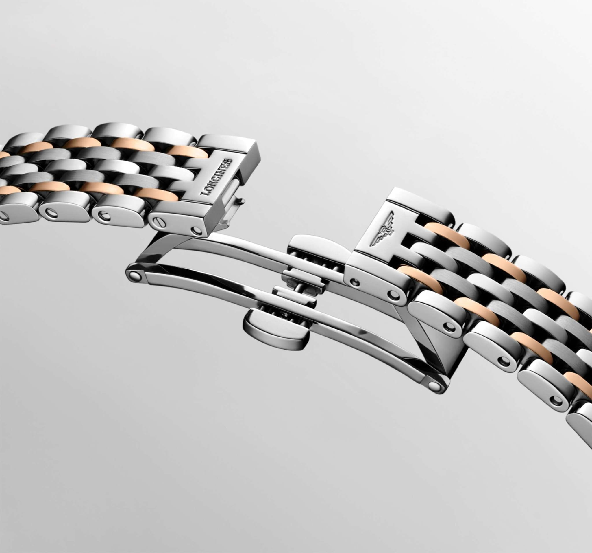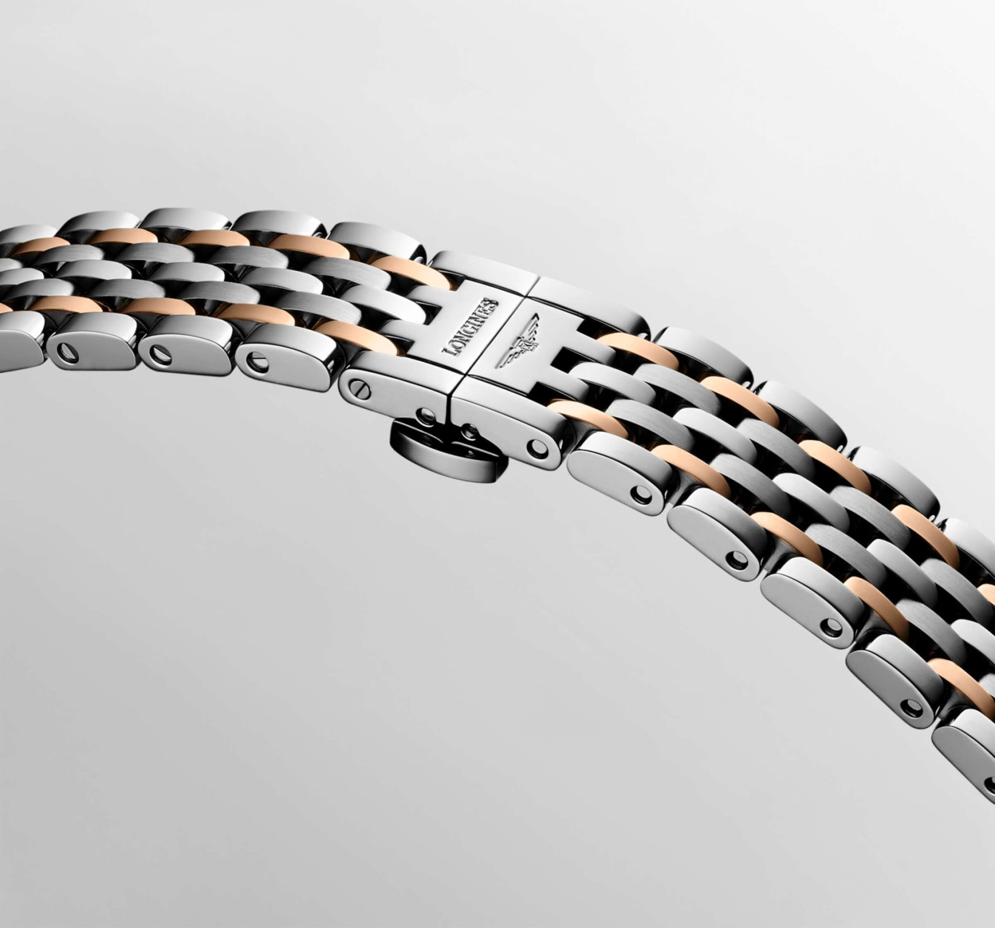 Изысканные женские часы Longines Elegant Collection L4.310.5.18.7 — это воплощение спокойной роскоши и вечного стиля. Все элементы циферблата подчеркивают элегантность и классический вкус модели. Корпус часов изготовлен из нержавеющей стали, диаметром 29 мм. Защиту циферблата обеспечивает прочное сапфировое стеклоСапфировое стеклоПрочный и надёжный материал из кристалла сапфира синтетического происхождения, характеризующийся особой твёрдостью и устойчивостью к царапинам и повреждениям. с антибликовым покрытиемАнтибликовое покрытиеСлой оксида металла в 0,13-0,3 микрон, благодаря которому стекло часов не бликует и не отражает свет. Антибликовое покрытие уменьшает отражение света в 10 раз, обеспечивая отличную читаемость показателей циферблата. гарантирующее четкость показаний. Неподвижный безельБезельВнешний ободок, закрепляющий стекло. В спортивных часах так называется поворотное кольцо с делениями на циферблате, выполняет роль таймера – замеряет отрезки времени на шкале. Неподвижный безель – элемент декора. Однонаправленно вращающийся безель на дайверских часах позволяет фиксировать моменты погружения и выныривания на поверхность. из 18-каратного золота18-каратное золотоОбозначение по каратной системе пробирования, оно показывает, сколько драгоценного металла содержится в изделии. 18 карат - в составе 75% чистого золота, соответствует 750 пробе.