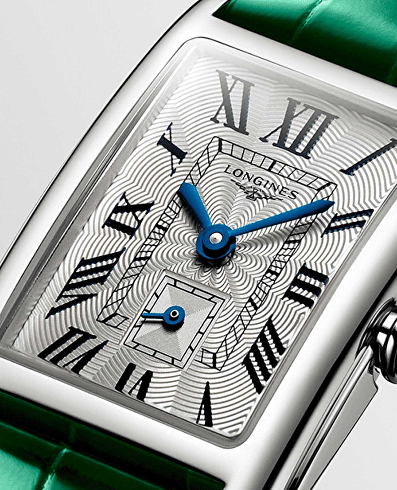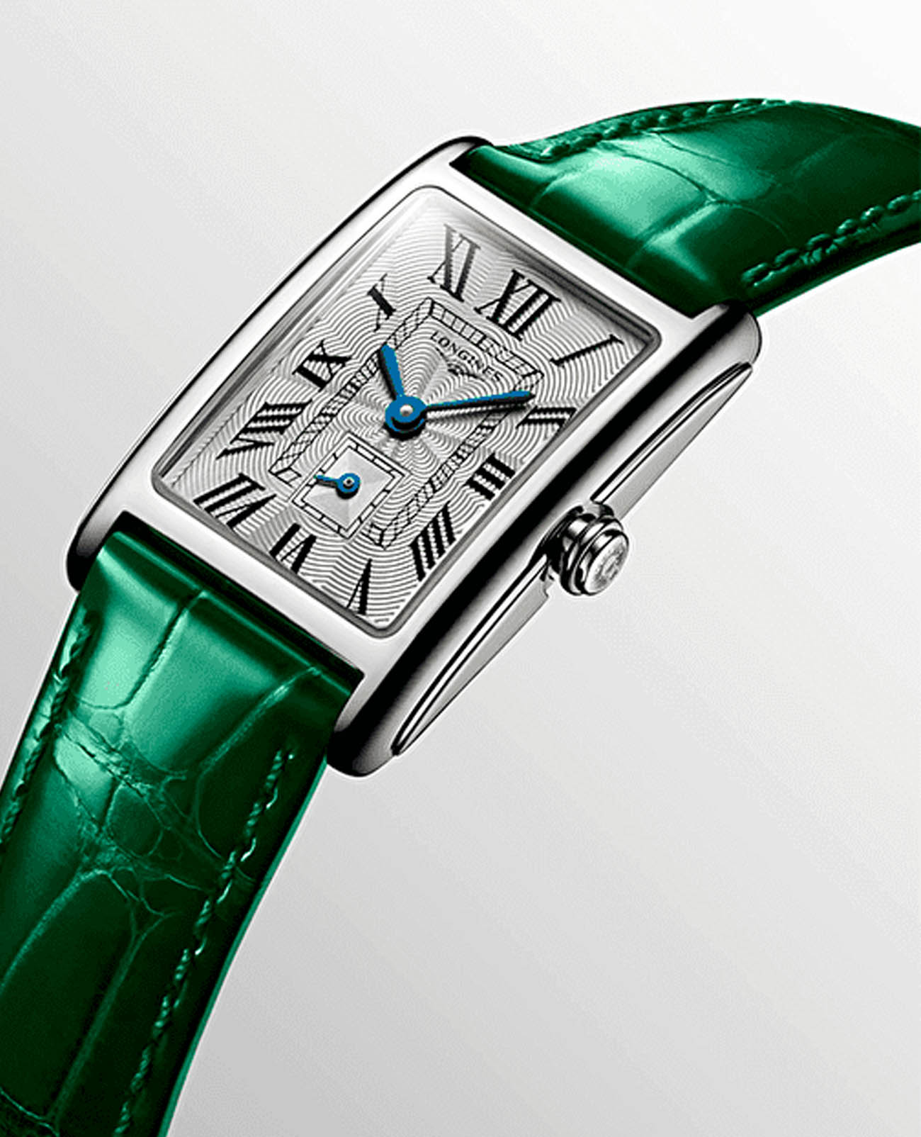 Женские швейцарские часы Longines DolceVita L5255471A, кварцевый механизм с высокой точностью. Сапфировое стеклоСапфировое стеклоПрочный и надёжный материал из кристалла сапфира синтетического происхождения, характеризующийся особой твёрдостью и устойчивостью к царапинам и повреждениям. устойчивое к появлению царапин, обладающее высокой прозрачностью. Корпус часов изготовлен из нержавеющей стали. Циферблат украшен узором «Flinque», метки в виде римских цифр. Окошко даты в положении 6 часов. Класс водозащиты: 30 метров, позволит защитить корпус от случайных брызг или капель дождя. Ремешок из кожи аллигатора с системой быстрой замены на стандартной застежке.