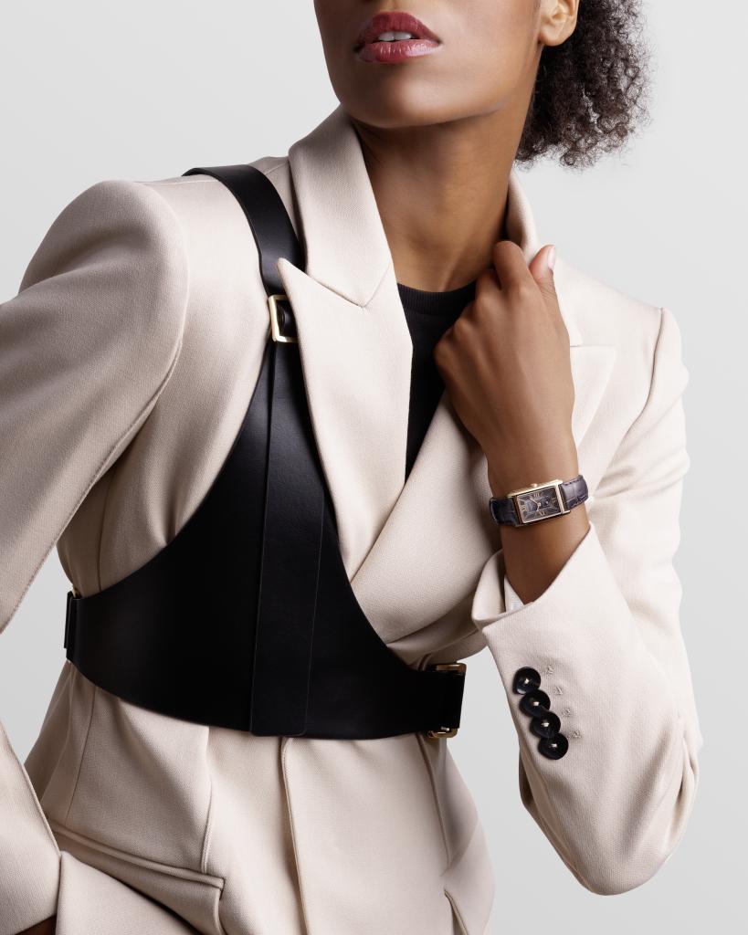 . Метки в виде римских цифр. Малая секундная стрелка в положении 6 часов. Класс водозащиты: 30 метров, позволит защитить корпус от случайных брызг или капель дождя. Ремешок из кожи аллигатора на стандартной застежке.