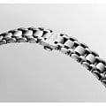 Завершающий штрих — изящный стальной браслет, фиксирующийся на запястье с помощью застёжки-бабочки с кнопкамиЗастёжка "бабочка"Такой вид застёжки дополняется предохранителями, помогающими избежать случайного раскрытия браслета. Обладают изящным исполнением. , что обеспечивает комфорт и надёжность в ношении.