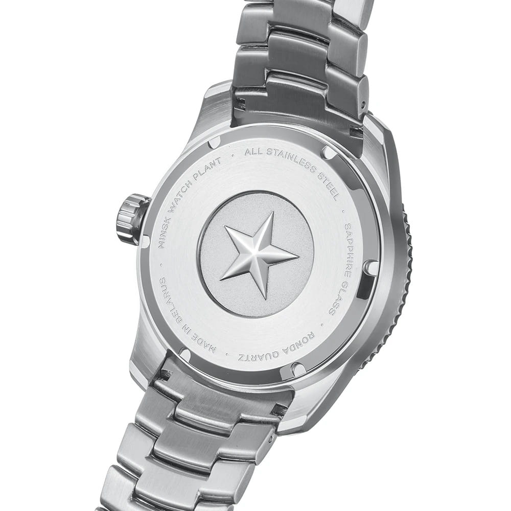 Мужские наручные часы Луч Commander 96760566 — это стильное сочетание элегантности и современного дизайна. Элегантный корпус диаметром 46.8 мм выполнен из нержавеющей стали, который придает модели особый изысканный вид. Циферблат защищен сапфировым стекломСапфировое стеклоПрочный и надёжный материал из кристалла сапфира синтетического происхождения, характеризующийся особой твёрдостью и устойчивостью к царапинам и повреждениям., обеспечивающим устойчивость к царапинам. Метки в виде штрихов. Часы оснащены кварцевым механизмом, а браслет из нержавеющей стали фиксируется на раскладной застёжкеРаскладная застёжкаТакой тип застёжки используется только на браслетах из металла. Она никогда не раскрывается полностью, происходит разделение на 2 и более частей. Раскладывающая застёжка снизит вероятность потери часов к минимуму.. Поворотный безельБезельВнешний ободок, закрепляющий стекло. В спортивных часах так называется поворотное кольцо с делениями на циферблате, выполняет роль таймера – замеряет отрезки времени на шкале. Неподвижный безель – элемент декора. Однонаправленно вращающийся безель на дайверских часах позволяет фиксировать моменты погружения и выныривания на поверхность. с PVD-покрытиемPVDУльтратонкое покрытие наносится в технике вакуумного напыления, сочетает в себе нитрид титана особой прочности со слоем золота или оксида хрома. Несёт в себе декоративную или защитную функцию. черного цвета. Стрелки и метки с люминесцентным покрытиемЛюминесцентное покрытиеПозволяет считывать показания времени в темноте. Производители наносят на стрелки, часовые индексы, безель или поверхность циферблата светонакопительный состав, дающий холодное свечение. позволяют легко считывать время даже в условиях недостаточного освещения. Водозащита 10 бар позволит защитить корпус от случайных брызг или капель дождя. Луч — отличный выбор для тех, кто ценит утонченность и качество.