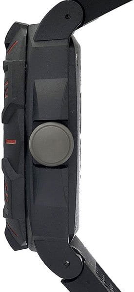 Эффектные швейцарские наручные часы. 12-ти и 24-х часовой формат времени. Безель вращается в одном направлении. Задняя крышка из усиленного карбона закреплена стальными винтами. Заводная головка с защитой выполнена из стали. Материал корпуса: пластик, усиленный прессованный карбон; Материал браслета: полиуретановый; Стекло: Минеральное; Водозащита: 100 м. (WR 100).