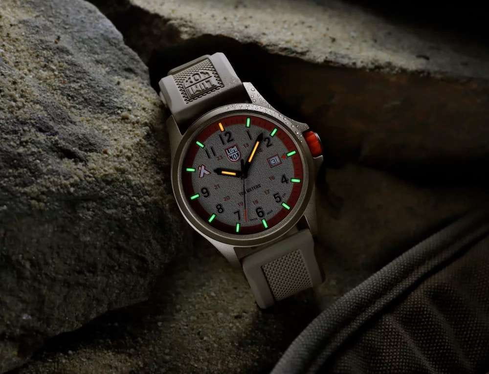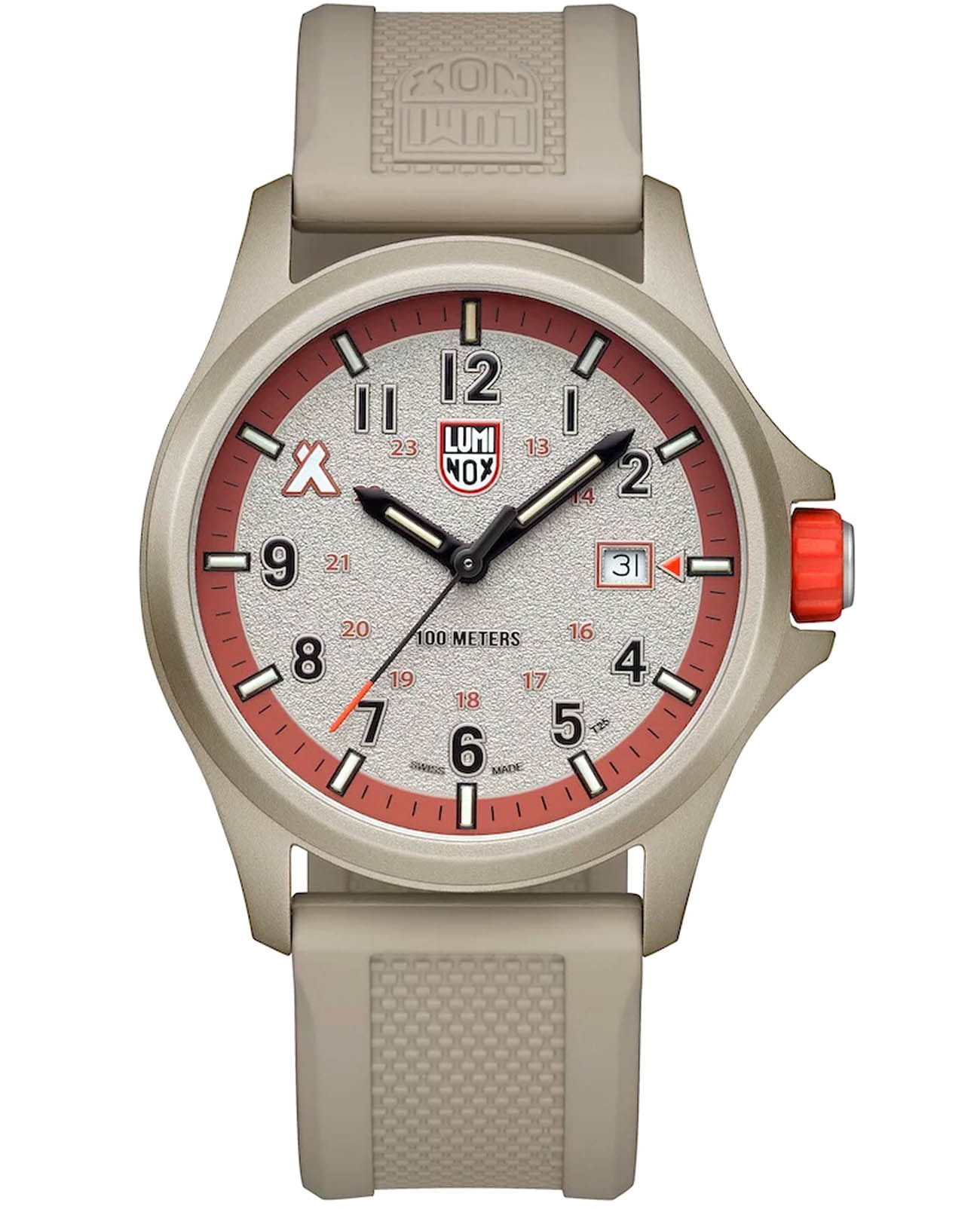 Luminox Bear Grylls Survival Series XB.3717 — мужская модель, созданная для экстремальных условий с акцентом на надёжность и максимальную функциональность. Корпус диаметром 43 мм выполнен из алюминия (специальный сплав ALUMI-NOX, легкий и коррозионностойкий). Защитную роль выполняет сапфировое стеклоСапфировое стеклоПрочный и надёжный материал из кристалла сапфира синтетического происхождения, характеризующийся особой твёрдостью и устойчивостью к царапинам и повреждениям. с антибликовым покрытиемАнтибликовое покрытиеСлой оксида металла в 0,13-0,3 микрон, благодаря которому стекло часов не бликует и не отражает свет. Антибликовое покрытие уменьшает отражение света в 10 раз, обеспечивая отличную читаемость показателей циферблата., обеспечивающим отличную читаемость под любым углом. В основе лежит швейцарский кварцевый механизм с индикацией часов, минут, секунд и даты. Водозащита 100 м (10 бар) соответствует стандартам дайверских часов, подходит для плавания и сноркелинга, но не для глубоководного дайвинга. Благодаря технологии LLTLLTLLT — это автономный механизм подсветки, основанный на использовании микроскопических газонаполненных элементов. Специальные герметичные капсулы из боросиликатного стекла, интегрированные в циферблат, генерируют свечение без необходимости подключения к внешним источникам энергии. Для их работы не требуется ни дополнительный свет, ни механическое воздействие (например, нажатие кнопки). Свечение возникает благодаря химическому процессу: реакция между тритием, заключенным в капсулах, и люминофорным покрытием создает стабильное автономное освещение. Технология обеспечивает энергетическую независимость и долговечность подсветки.-подсветки, эти часы гарантируют превосходную видимость в темноте на протяжении 25 лет. Окошко даты находится в положении 3 часа. Модель укомплектована каучуковым ремешком песочного цвета с классической застёжкой, что обеспечивает комфортное ношение и фиксацию на запястье. Часы разработаны для экстремальных условий и активного образа жизни. Они сочетают в себе легкость, прочность и отличную видимость в любое время суток.