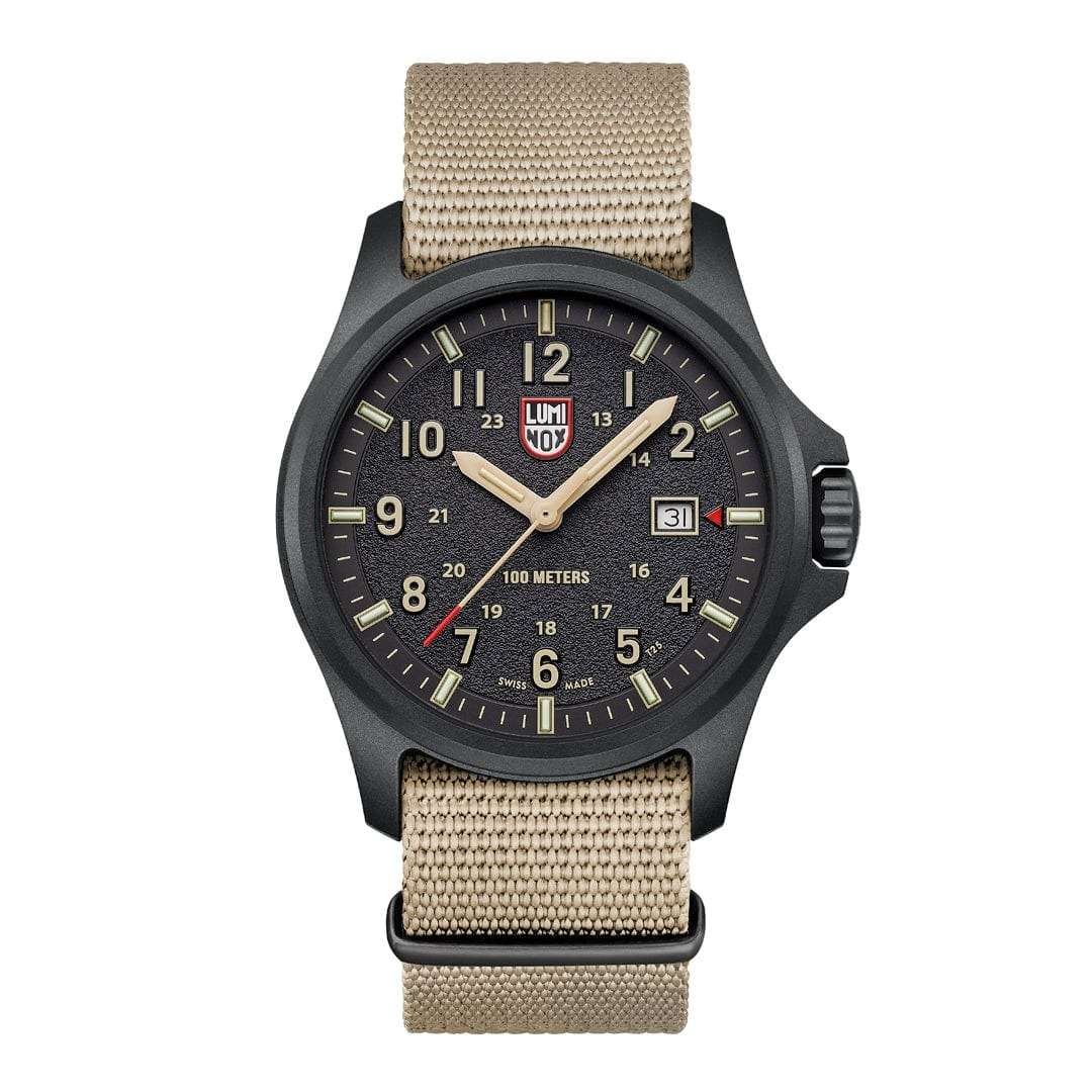 Часы Luminox XL.1970.SET – это воплощение швейцарского качества и надежности, созданные специально для активных мужчин, которые живут в ритме приключений. Эти часы получили свое название в честь пустыни Атакама, самой сухой в мире, что подчеркивает их выносливость и приспособленность к суровым условиям. Модель оснащена кварцевым механизмом с калибром Ronda 515, что обеспечивает высокую точность хода. Корпус выполнен из пластика, усиленного прессованным карбоном CARBONOX, что делает его прочным и легким. Черный текстурированный циферблат напоминает о суровом ландшафте пустыни, а метки в виде штрихов и арабских цифр обеспечивают легкость считывания времени. Часы обладают водозащитой 100WR, что позволяет не беспокоиться о них в условиях повышенной влажности. Специальная LLTLLTLLT — это автономный механизм подсветки, основанный на использовании микроскопических газонаполненных элементов. Специальные герметичные капсулы из боросиликатного стекла, интегрированные в циферблат, генерируют свечение без необходимости подключения к внешним источникам энергии. Для их работы не требуется ни дополнительный свет, ни механическое воздействие (например, нажатие кнопки). Свечение возникает благодаря химическому процессу: реакция между тритием, заключенным в капсулах, и люминофорным покрытием создает стабильное автономное освещение. Технология обеспечивает энергетическую независимость и долговечность подсветки.-подсветка гарантирует непревзойденную видимость в темное время суток на протяжении 25 лет. Окошко даты удобно расположено в положении 3 часа, а заводная головка с защитой и дополнительными прокладками обеспечивает надежную герметичность. Стальная задняя крышка крепится на четырех винтах и украшена выгравированным изображением компаса, что добавляет модели уникальности. Часы имеют габариты: диаметр 43 мм, толщина 13 мм, ширина ремешка 23 мм. Ремешок выполнен из каучука с текстильной вставкой и оснащен классической застежкой, что обеспечивает комфортное ношение в течение всего дня. Также у этой модели предусмотрен дополнительный бежевый тканевый ремень NATO. Сапфировое стеклоСапфировое стеклоПрочный и надёжный материал из кристалла сапфира синтетического происхождения, характеризующийся особой твёрдостью и устойчивостью к царапинам и повреждениям. с антибликовым покрытиемАнтибликовое покрытиеСлой оксида металла в 0,13-0,3 микрон, благодаря которому стекло часов не бликует и не отражает свет. Антибликовое покрытие уменьшает отражение света в 10 раз, обеспечивая отличную читаемость показателей циферблата. защищает циферблат от царапин и обеспечивает отличную видимость при любом освещении.