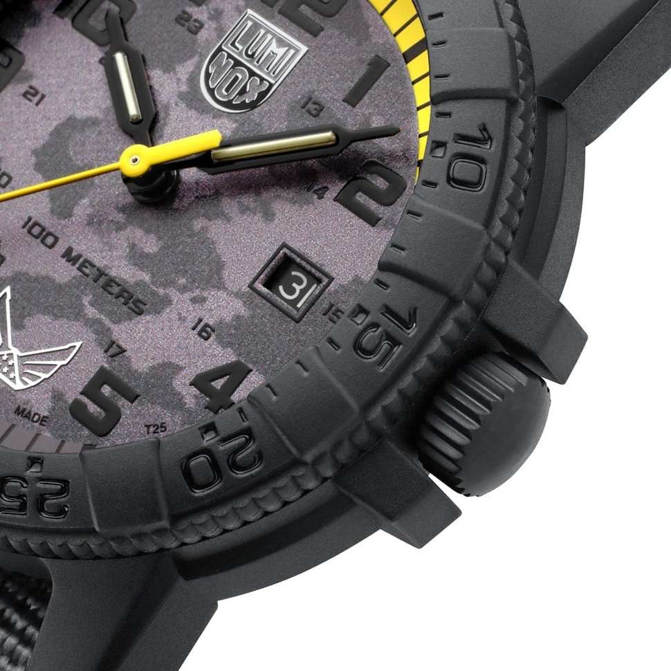 Часы Luminox X Volition America Leatherback Sea Turtle Giant XS.0321.BO.VOL представляют собой элегантное сочетание стиля и функциональности. Выполненные в эксклюзивном цвете Thunder Grey, они привлекают внимание своим уникальным дизайном. Циферблат украшен фирменным камуфляжным рисунком Volition с яркими желтыми акцентами, включая индикатор погружения и секундную стрелку. Черный корпус и безельБезельВнешний ободок, закрепляющий стекло. В спортивных часах так называется поворотное кольцо с делениями на циферблате, выполняет роль таймера – замеряет отрезки времени на шкале. Неподвижный безель – элемент декора. Однонаправленно вращающийся безель на дайверских часах позволяет фиксировать моменты погружения и выныривания на поверхность. часов выполнены из карбонаКарбонОт «carbon», «carbone» - углерод, углепластик - полимерный композиционный материал из переплетённых под определенным углом между собой нитей углеродного волокна, применяется для изготовления лёгких, но прочных деталей. В часах часто используют для украшения циферблатов и ремешков. Так же карбон используется в изготовлении корпусов. Такие корпуса обладают антикоррозионным свойством, не поддаются электромагнитному излучению, обладают повышенной прочностью и противоударностью. CARBONOX, что обеспечивает прочность и легкость конструкции. Логотип Volition, расположенный на 6 часах, подчеркивает благотворительный дух бренда. Эти часы обладают водонепроницаемостью до 100 метров, что делает их идеальными для активного образа жизни. Они оснащены проверенной системой освещения Luminox Light Technology, благодаря которой циферблат всегда остается видимым, независимо от условий освещения, с автономной работой до 25 лет. Часы оснащены механизмом Ronda 515 HH6 и обладают множеством технических характеристик, включая вращающийся в одном направлении безельБезельВнешний ободок, закрепляющий стекло. В спортивных часах так называется поворотное кольцо с делениями на циферблате, выполняет роль таймера – замеряет отрезки времени на шкале. Неподвижный безель – элемент декора. Однонаправленно вращающийся безель на дайверских часах позволяет фиксировать моменты погружения и выныривания на поверхность. с покрытием Superluminova на отметке 12 часов. Закаленное минеральное стеклоМинеральное стеклоМинеральное стекло представляет собой искусственно выращенный минерал кварца. Такое стекло отличается особой устойчивостью к повреждениям и царапинам. Уступает по некоторым качествам сапфировому стеклу. и двойная защитная прокладка на короне обеспечивают дополнительную надежность. Серая тесьма ремешка и классическая застежка дополняют общий стиль и комфорт ношения. Сделанные в Швейцарии, эти часы воплощают в себе высокое качество и современный дизайн.