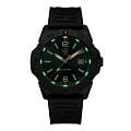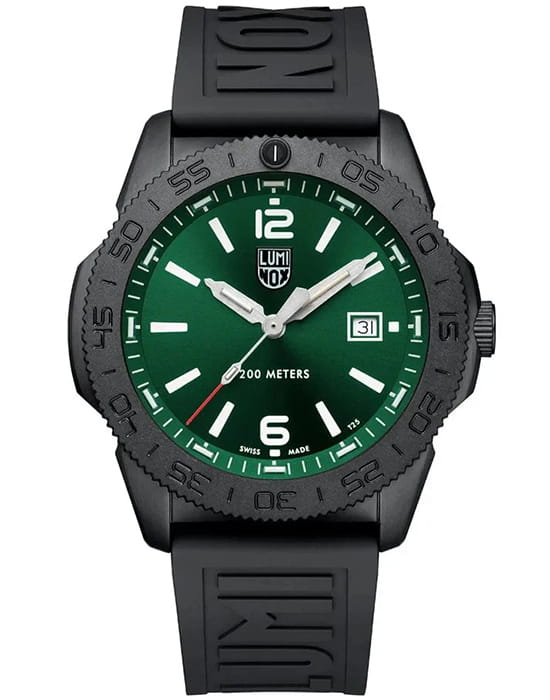 Luminox XS.3137.B — мужская модель серии Pacific Diver, сочетающая надёжность дайверских часов и современный стиль. Корпус диаметром 44 мм выполнен из нержавеющей стали с чёрным PVDPVDУльтратонкое покрытие наносится в технике вакуумного напыления, сочетает в себе нитрид титана особой прочности со слоем золота или оксида хрома. Несёт в себе декоративную или защитную функцию.-покрытием, а односторонний вращающийся безельБезельВнешний ободок, закрепляющий стекло. В спортивных часах так называется поворотное кольцо с делениями на циферблате, выполняет роль таймера – замеряет отрезки времени на шкале. Неподвижный безель – элемент декора. Однонаправленно вращающийся безель на дайверских часах позволяет фиксировать моменты погружения и выныривания на поверхность. из углеродного композита отличается прочностью и лёгкостью. Защитную функцию выполняет сапфировое стеклоСапфировое стеклоПрочный и надёжный материал из кристалла сапфира синтетического происхождения, характеризующийся особой твёрдостью и устойчивостью к царапинам и повреждениям. с антибликовым покрытиемАнтибликовое покрытиеСлой оксида металла в 0,13-0,3 микрон, благодаря которому стекло часов не бликует и не отражает свет. Антибликовое покрытие уменьшает отражение света в 10 раз, обеспечивая отличную читаемость показателей циферблата., обеспечивающим чёткую читаемость в любых условиях. Механизм — швейцарский кварцевый, с индикацией часов, минут, секунд и даты. Водозащита 200 м (20 бар) соответствует профессиональным стандартам для дайвинга. Метки и стрелки покрыты люминесцентным покрытиемЛюминесцентное покрытиеПозволяет считывать показания времени в темноте. Производители наносят на стрелки, часовые индексы, безель или поверхность циферблата светонакопительный состав, дающий холодное свечение. и дополнены системой Luminox Light Technology, которая обеспечивает постоянную подсветку до 25 лет без подзарядки. Модель укомплектована каучуковым ремешком с классической застёжкой, который подчёркивает спортивный характер и удобство при активном использовании.