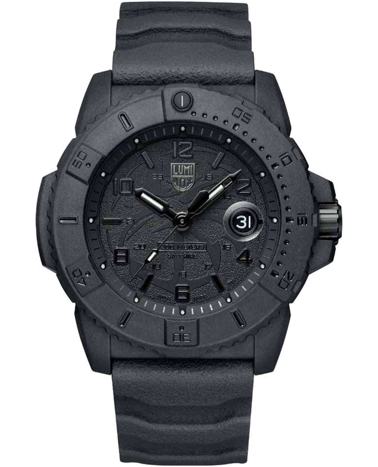 Швейцарские кварцевые часы Luminox XS.3601.BO.NSF идеально сочетают в себе современный стиль и надежность. Благодаря корпусу из пластика, усиленного прессованным карбономКарбонОт «carbon», «carbone» - углерод, углепластик - полимерный композиционный материал из переплетённых под определенным углом между собой нитей углеродного волокна, применяется для изготовления лёгких, но прочных деталей. В часах часто используют для украшения циферблатов и ремешков. Так же карбон используется в изготовлении корпусов. Такие корпуса обладают антикоррозионным свойством, не поддаются электромагнитному излучению, обладают повышенной прочностью и противоударностью., они отличаются прочностью и малым весом. Черный циферблат подчеркивает спортивный дизайн модели, а полиуретановый ремешок с классической застежкой обеспечивает комфорт при носке. Часы обладают водозащитой на глубине до 200 метров, что делает их идеальным выбором для любителей водных видов спорта. LLTLLTLLT — это автономный механизм подсветки, основанный на использовании микроскопических газонаполненных элементов. Специальные герметичные капсулы из боросиликатного стекла, интегрированные в циферблат, генерируют свечение без необходимости подключения к внешним источникам энергии. Для их работы не требуется ни дополнительный свет, ни механическое воздействие (например, нажатие кнопки). Свечение возникает благодаря химическому процессу: реакция между тритием, заключенным в капсулах, и люминофорным покрытием создает стабильное автономное освещение. Технология обеспечивает энергетическую независимость и долговечность подсветки.-подсветка гарантирует отличную видимость в темное время суток, а сапфировое стеклоСапфировое стеклоПрочный и надёжный материал из кристалла сапфира синтетического происхождения, характеризующийся особой твёрдостью и устойчивостью к царапинам и повреждениям. с антибликовым покрытиемАнтибликовое покрытиеСлой оксида металла в 0,13-0,3 микрон, благодаря которому стекло часов не бликует и не отражает свет. Антибликовое покрытие уменьшает отражение света в 10 раз, обеспечивая отличную читаемость показателей циферблата. защищает от царапин и обеспечивает четкость отображения. Модель оснащена функцией календаря с окошком даты, дополненным увеличительным стеклом для удобства использования. Часы поддерживают 12-ти и 24-х часовой формат времени, а вращающийся в одном направлении безельБезельВнешний ободок, закрепляющий стекло. В спортивных часах так называется поворотное кольцо с делениями на циферблате, выполняет роль таймера – замеряет отрезки времени на шкале. Неподвижный безель – элемент декора. Однонаправленно вращающийся безель на дайверских часах позволяет фиксировать моменты погружения и выныривания на поверхность. позволяет отслеживать время погружения или других активностей. Задняя крышка и заводная головка выполнены из стали, что добавляет дополнительную прочность конструкции. Заводная головка с защитой предотвращает случайное изменение времени. Благодаря диаметру в 45 мм и толщине 14 мм, эти часы обладают внушительным и привлекательным внешним видом.