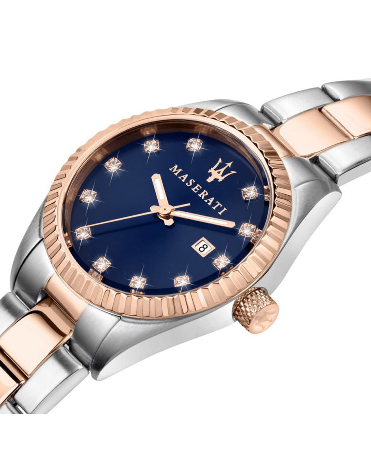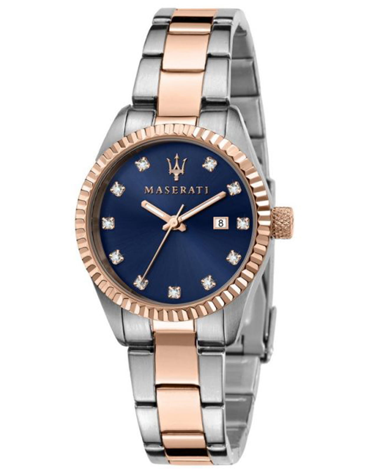 Часы Maserati Competizione R8853100507 отличаются стильным и современным дизайном, идеально подходящим для деловых и повседневных образов. Эти наручные часы оснащены надёжным кварцевым механизмом, который обеспечивает высокую точность показаний времени. Корпус часов диаметром 31 мм выполнен из прочной стали, что гарантирует долговечность и устойчивость к внешним воздействиям. Минеральное стеклоМинеральное стеклоМинеральное стекло представляет собой искусственно выращенный минерал кварца. Такое стекло отличается особой устойчивостью к повреждениям и царапинам. Уступает по некоторым качествам сапфировому стеклу. защищает зелёный циферблат, на котором расположены изящные риски, создавая элегантный и утончённый вид. Часы обладают водостойкостью до 100 метров (10 АТМ), что позволяет не беспокоиться о попадании влаги при плавании или занятиях водными видами спорта. Стальной браслет с раскладной застёжкойРаскладная застёжкаТакой тип застёжки используется только на браслетах из металла. Она никогда не раскрывается полностью, происходит разделение на 2 и более частей. Раскладывающая застёжка снизит вероятность потери часов к минимуму. не только обеспечивает комфортное ношение, но и придаёт аксессуару дополнительную элегантность, подчёркивая его современный стиль. Люминесцентное покрытиеЛюминесцентное покрытиеПозволяет считывать показания времени в темноте. Производители наносят на стрелки, часовые индексы, безель или поверхность циферблата светонакопительный состав, дающий холодное свечение. на стрелках обеспечивает отличную видимость в темноте.