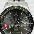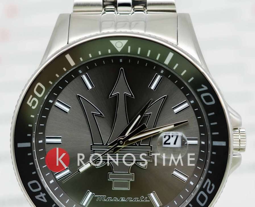 Модель Maserati Sfida R8853140010 — воплощение стиля и функциональности для современных мужчин, ценящих качество и элегантность. Корпус диаметром 44 мм выполнен из нержавеющей стали, обеспечивая прочность и долговечность. Минеральное стеклоМинеральное стеклоМинеральное стекло представляет собой искусственно выращенный минерал кварца. Такое стекло отличается особой устойчивостью к повреждениям и царапинам. Уступает по некоторым качествам сапфировому стеклу. надежно защищает синий циферблат с изящными рисками, придавая часам утонченный вид. Благодаря водостойкости до 100 метров (10 АТМ), эти часы станут вашим надежным спутником в любых условиях, будь то деловая встреча или активный отдых. Люминесцентное покрытиеЛюминесцентное покрытиеПозволяет считывать показания времени в темноте. Производители наносят на стрелки, часовые индексы, безель или поверхность циферблата светонакопительный состав, дающий холодное свечение. на стрелках и метках обеспечивает отличную видимость в темноте. Завершающий штрих — стальной браслет с раскладной застёжкойРаскладная застёжкаТакой тип застёжки используется только на браслетах из металла. Она никогда не раскрывается полностью, происходит разделение на 2 и более частей. Раскладывающая застёжка снизит вероятность потери часов к минимуму., который подчеркивает общий стиль, обеспечивая комфорт и надежность в носке. Вращающийся стальной безельБезельВнешний ободок, закрепляющий стекло. В спортивных часах так называется поворотное кольцо с делениями на циферблате, выполняет роль таймера – замеряет отрезки времени на шкале. Неподвижный безель – элемент декора. Однонаправленно вращающийся безель на дайверских часах позволяет фиксировать моменты погружения и выныривания на поверхность. с IP-покрытиемIP-покрытиеМетод ионного напыления. Демонстрирует повышенную устойчивость к истиранию, окислению и химическим веществам. Под воздействием высокого давления и температуры около 1500°C молекулы металла надёжно соединяются с частицами корпуса часов.. Циферблат выполнен по технологии Sunray (солнечные лучи) и украшен фирменным логотипом «Maserati». Метки в виде штрихов. Окошко даты с увеличительным стеклом находится в положении 3 часа.