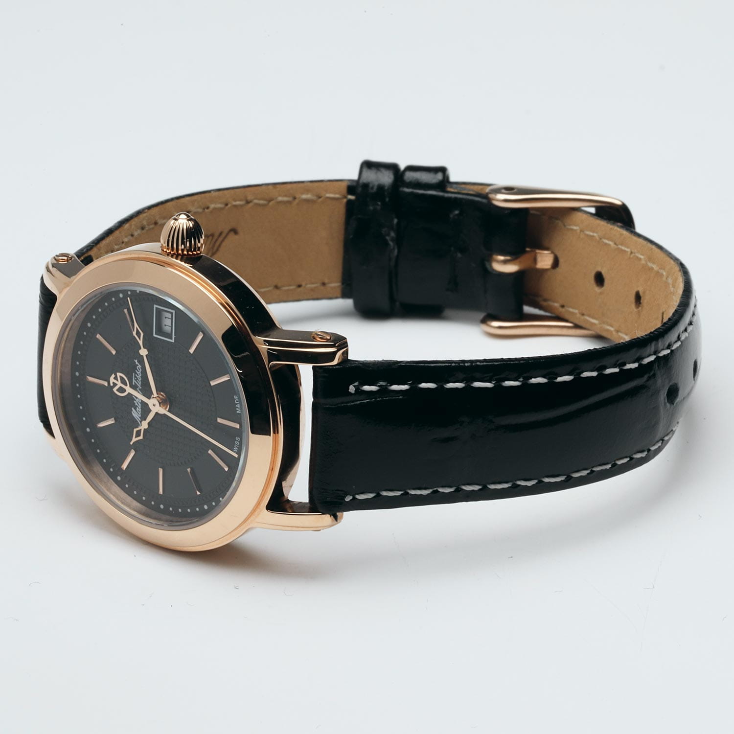 Женские кварцевые часы Mathey-Tissot City Leather D31186PN — это стильное сочетание элегантности и современного дизайна. Изящный корпус выполнен из нержавеющей стали 316L с розовым PVD-покрытиемPVDУльтратонкое покрытие наносится в технике вакуумного напыления, сочетает в себе нитрид титана особой прочности со слоем золота или оксида хрома. Несёт в себе декоративную или защитную функцию., что придаст образу женственности и романтизма. Изысканный циферблат с метками в виде штрихов придает модели особый блеск. Циферблат защищен минеральным стекломМинеральное стеклоМинеральное стекло представляет собой искусственно выращенный минерал кварца. Такое стекло отличается особой устойчивостью к повреждениям и царапинам. Уступает по некоторым качествам сапфировому стеклу. с сапфировым покрытием, обеспечивающий устойчивость к царапинам. Окошко даты находится в положении 3 часа. Часы оснащены надежным кварцевым механизмом. Кожаный ремень на стандартной застежке, гарантирует комфортное и безопасное ношение. Класс водозащиты: 50 метров позволит защитить корпус от случайных брызг или капель дождя. Mathey-Tissot — отличный выбор для тех, кто ценит утонченность и качество.